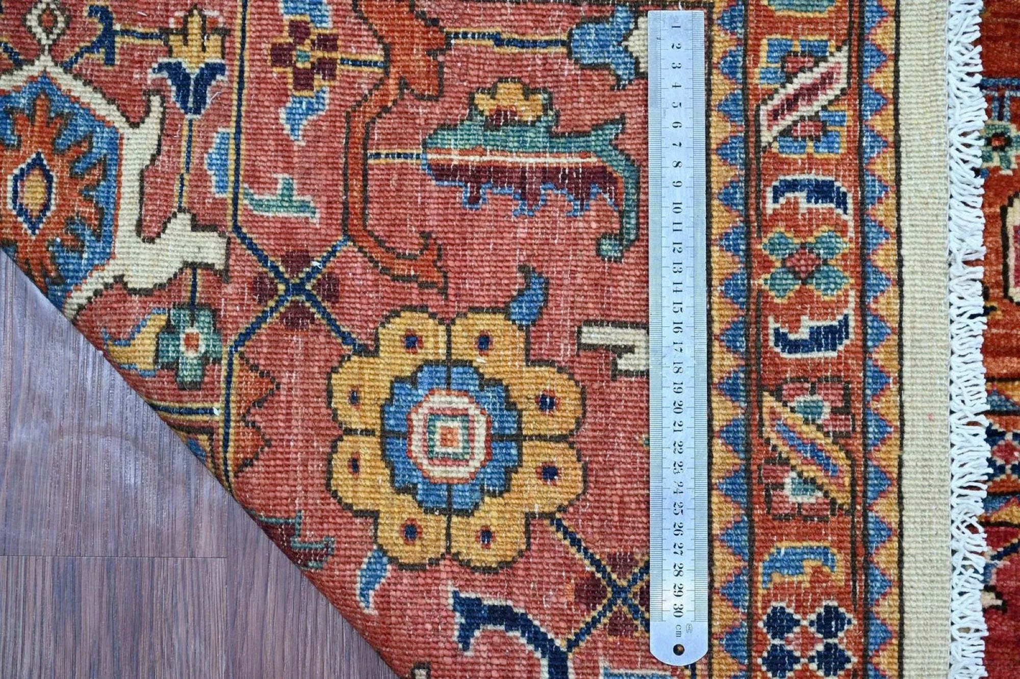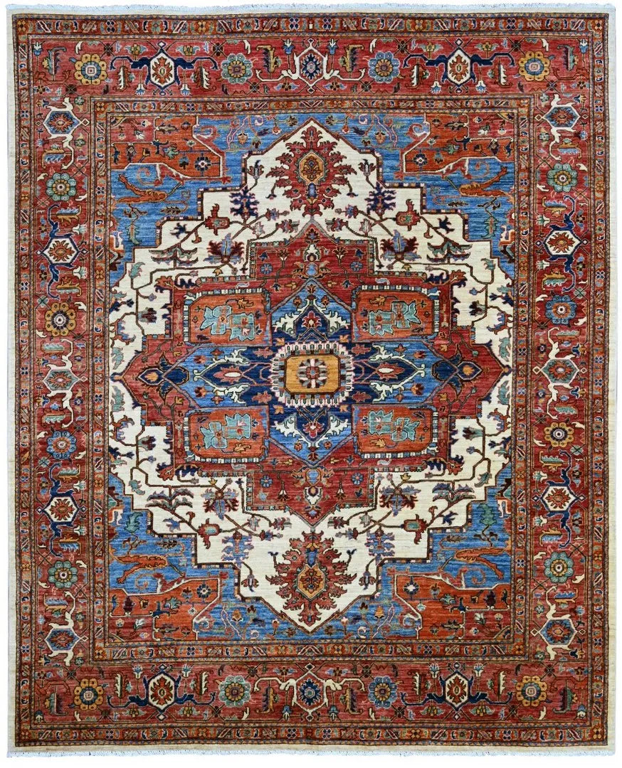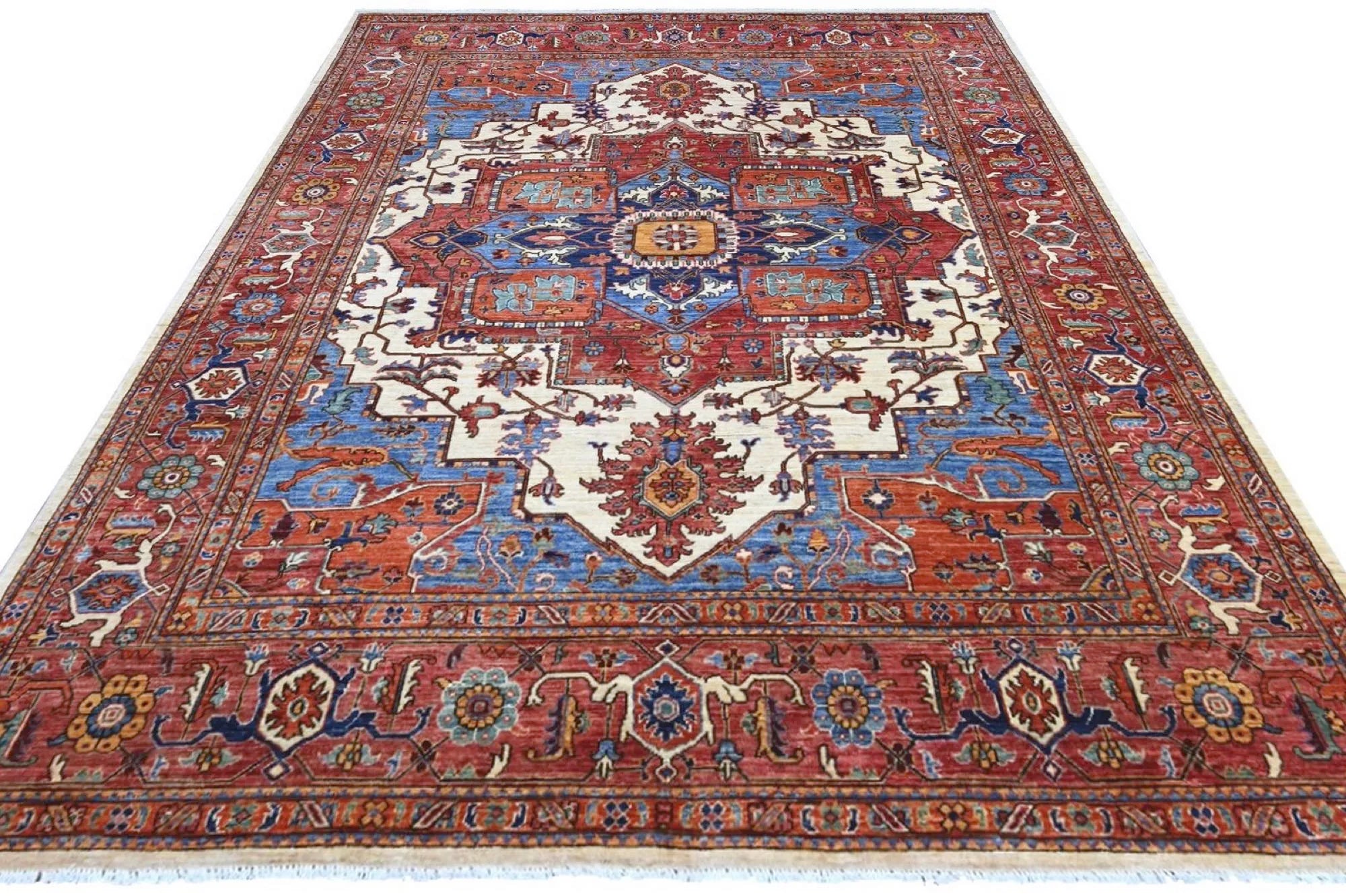 Dit exclusieve tapijt is geïnspireerd op de klassieke Perzische Heriz-motieven, maar opnieuw vormgegeven in een rustigere, modernere stijl met vrolijke en harmonieuze kleuren. Elk stuk is handgeknoopt in Afghanistan met handgesponnen wol en 100% plantaardige kleurstoffen, wat zorgt voor een natuurlijke glans en duurzame kleurechtheid. Hoewel traditionele Heriz-tapijten bekendstaan om hun krachtige geometrische vormen en markante medaillons, heeft dit moderne ontwerp een zachtere en eigentijdse uitstraling die perfect past in zowel klassieke als moderne interieurs. Zoekt u een handgeknoopt Heriz tapijt, een luxe Oosters design tapijt, of een tapijt met plantaardige verf? Dan is dit Heriz-geïnspireerde tapijt uit Afghanistan een uitstekende keuze — een elegant kunstwerk dat elke ruimte naar een hoger niveau tilt.