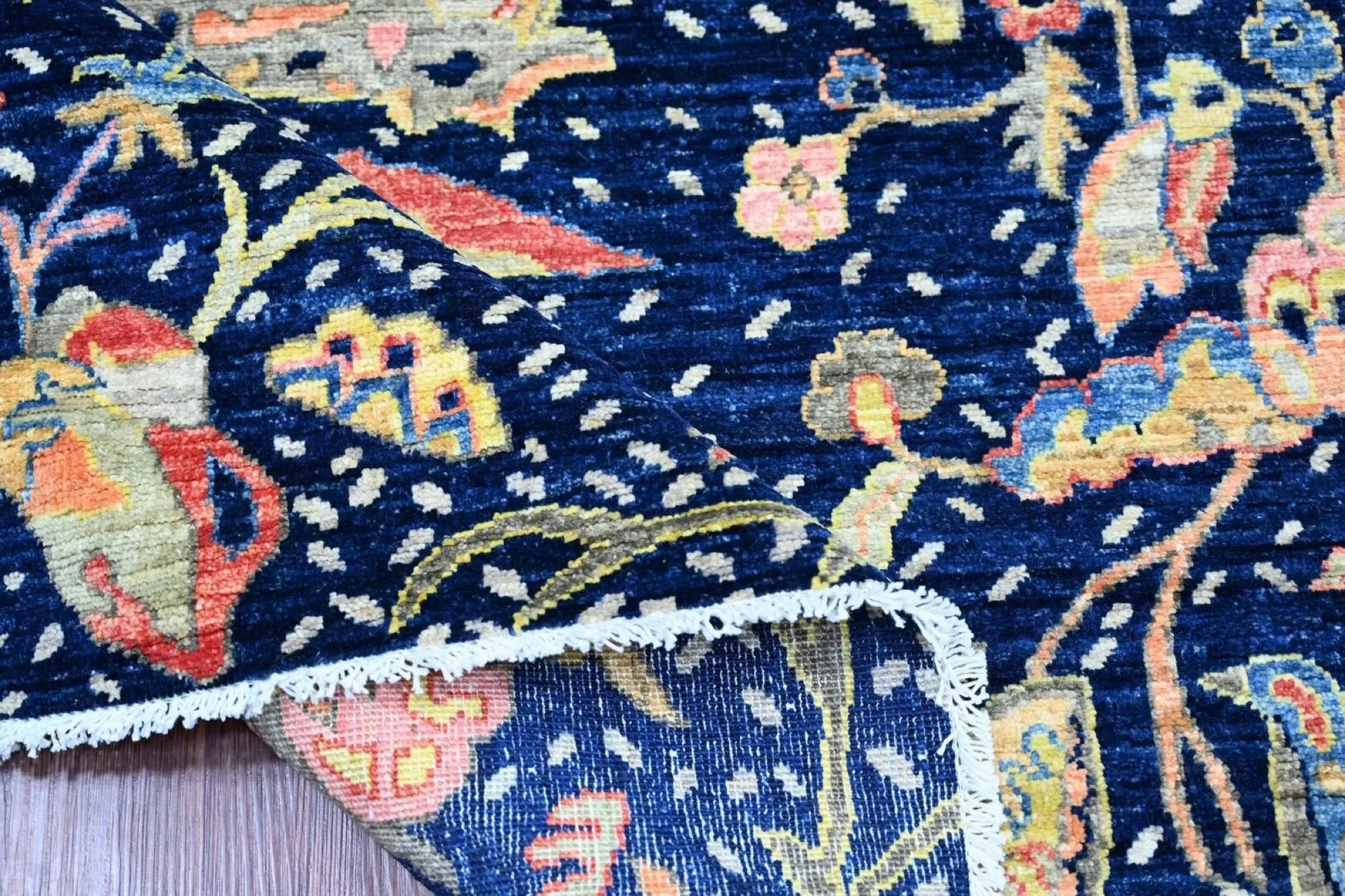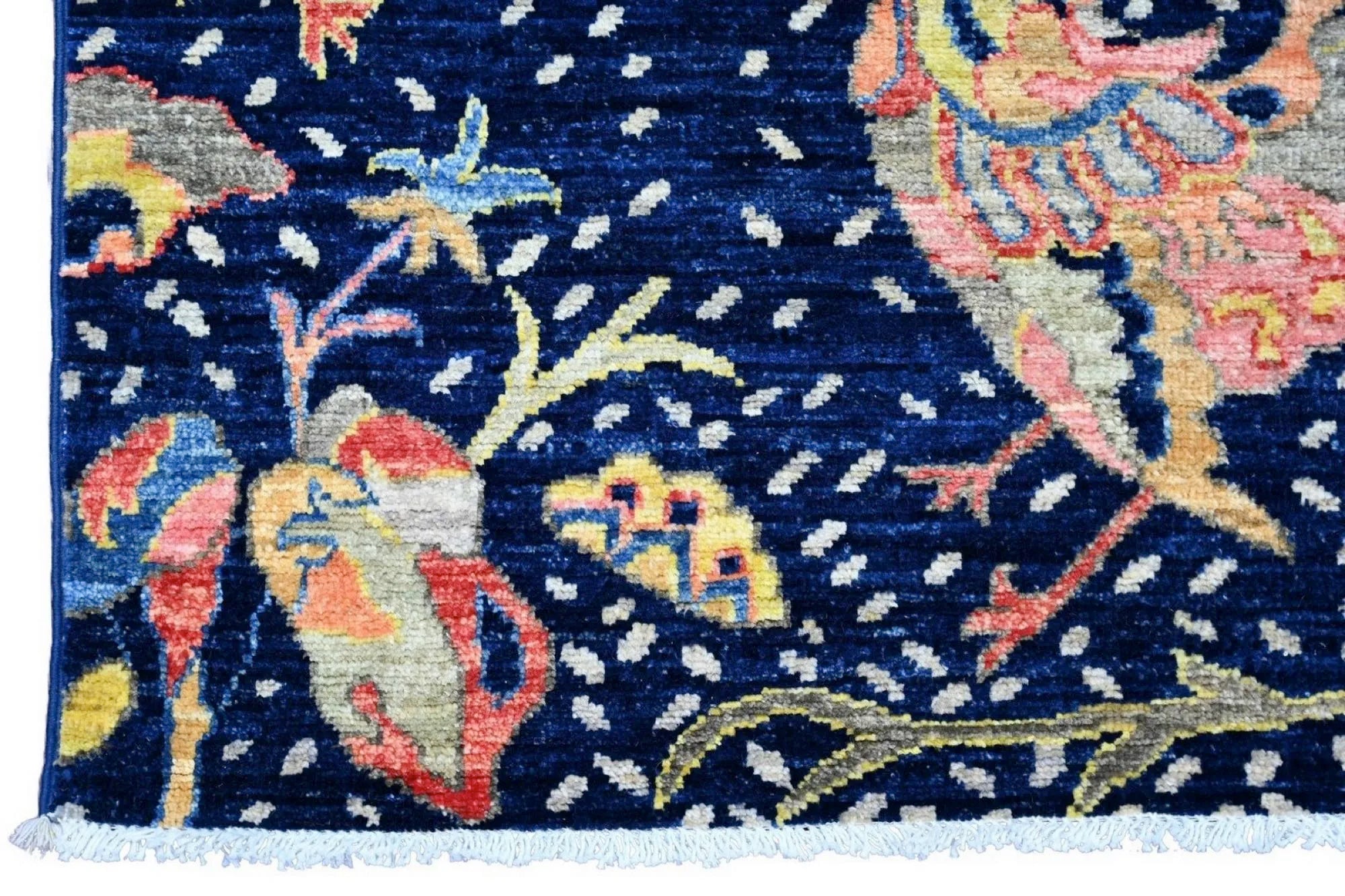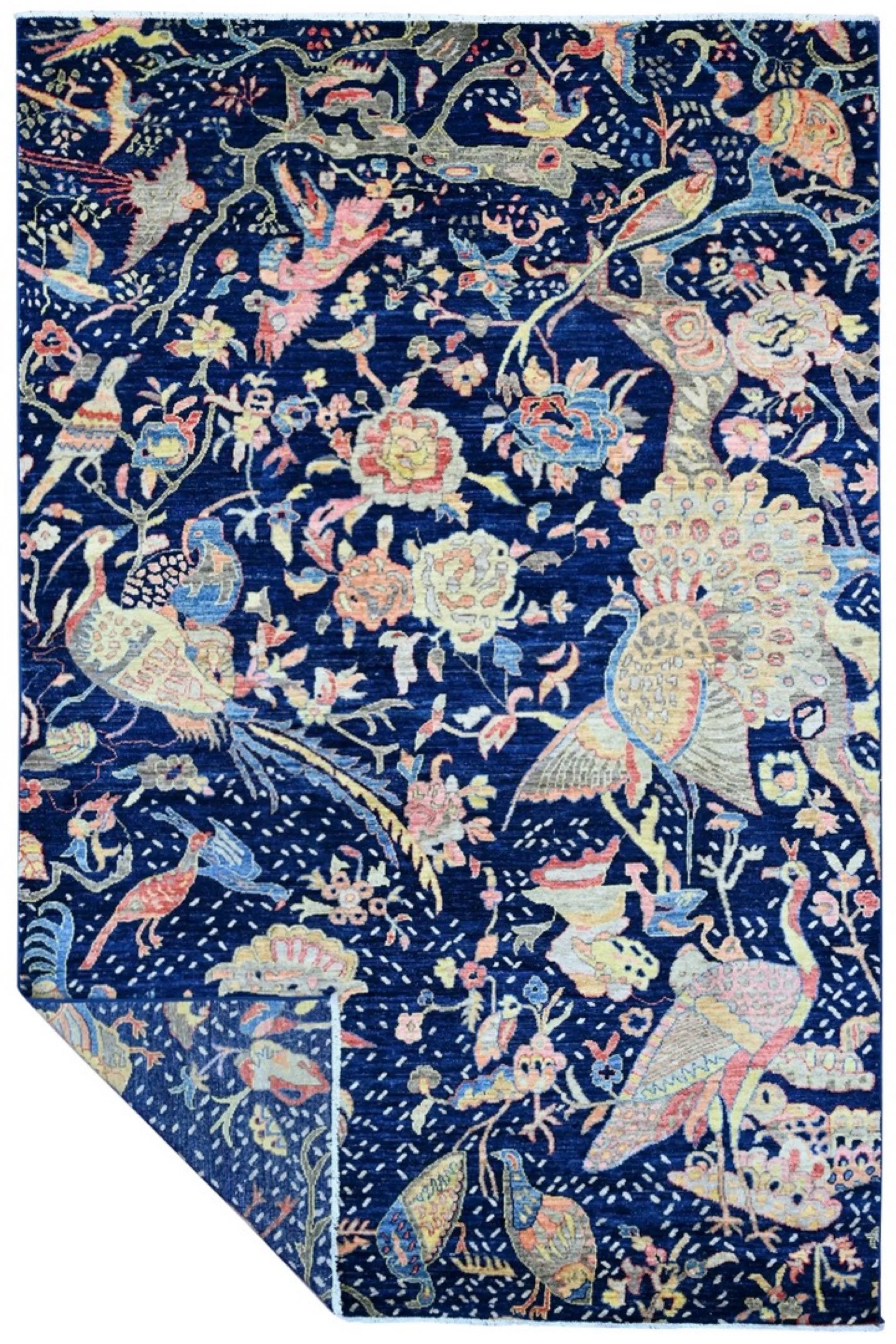 Nirvana is een uitzonderlijk handgeknoopt tapijt dat de rijke oosterse weeftraditie combineert met de poëtische schoonheid van de natuur. Geïnspireerd door de klassieke Khorjin-stijl biedt dit meesterwerk een vernieuwende interpretatie waarbij vogels, bladeren en natuurelementen samen een levendig en harmonieus patroon vormen. Elk detail is met artistieke precisie geknoopt, wat zorgt voor diepte, ritme en beweging. Het tapijt is vervaardigd uit 100% handgesponnen wol en volledig gekleurd met natuurlijke plantaardige kleurstoffen, waardoor het een warme, heldere en tijdloze uitstraling heeft. De natuurlijke glans van de wol laat de kleuren prachtig tot leven komen in elk type verlichting.Nirvana is niet zomaar een tapijt – het is een textiel kunstwerk dat elke ruimte vult met warmte, karakter en balans. Voor wie op zoek is naar een uniek, expressief en ambachtelijk tapijt met een bijzondere uitstraling, is Nirvana de perfecte keuze.