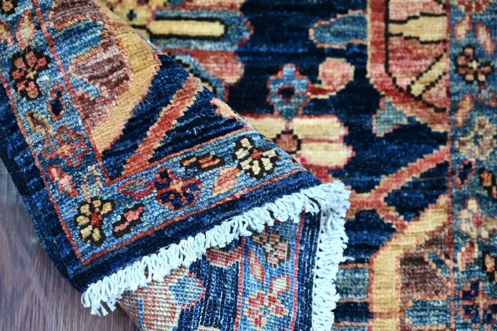 Al onze tapijten worden zorgvuldig en ambachtelijk met de hand vervaardigd. Dankzij deze handmatige productiemethode heeft ieder tapijt zijn eigen karakter en nuances. Deze individuele kenmerken waarborgen dat elk stuk een uniek kunstwerk op zichzelf is, waardoor het zich onderscheidt van massaproductie en een persoonlijke touch aan uw ruimte geeft.