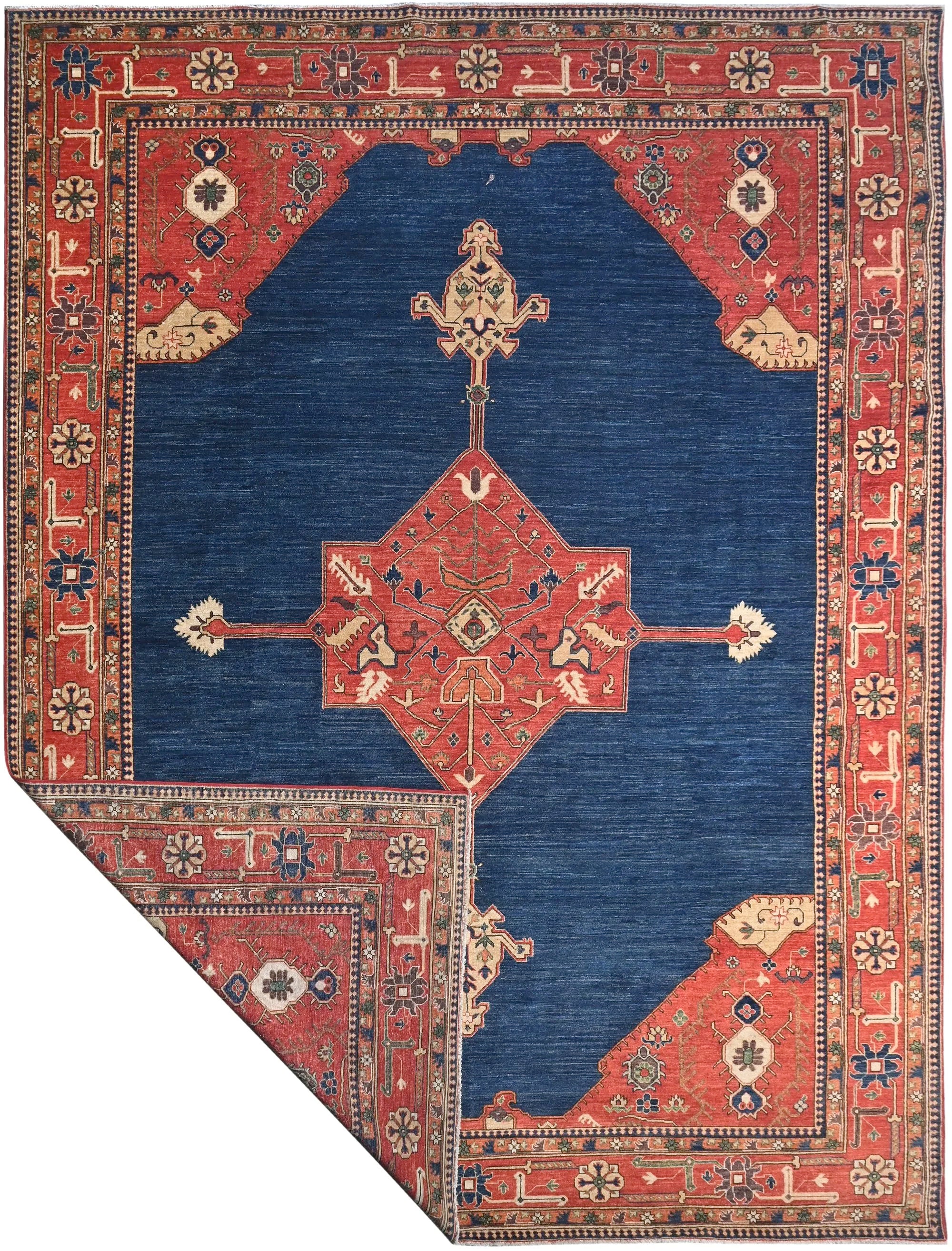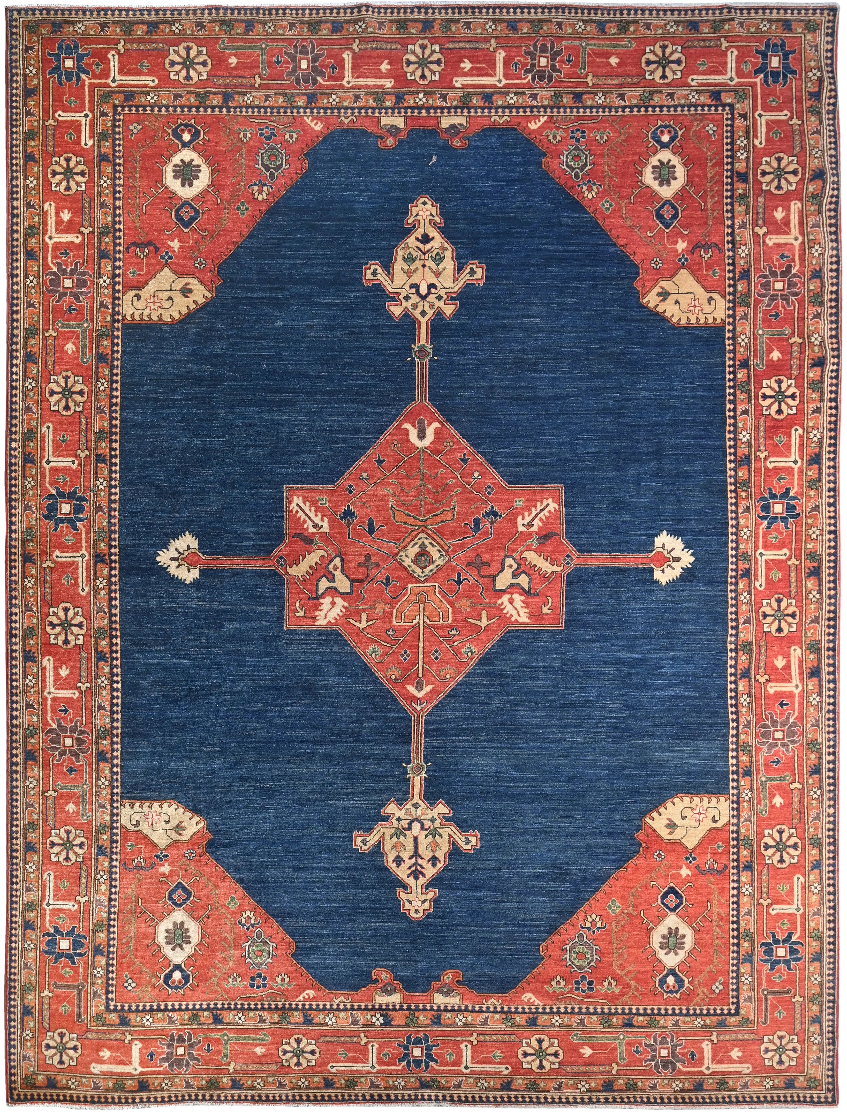 Dit exclusieve tapijt is geïnspireerd op de klassieke Perzische Heriz-motieven, maar opnieuw vormgegeven in een rustigere, modernere stijl met vrolijke en harmonieuze kleuren. Elk stuk is handgeknoopt in Afghanistan met handgesponnen wol en 100% plantaardige kleurstoffen, wat zorgt voor een natuurlijke glans en duurzame kleurechtheid. Hoewel traditionele Heriz-tapijten bekendstaan om hun krachtige geometrische vormen en markante medaillons, heeft dit moderne ontwerp een zachtere en eigentijdse uitstraling die perfect past in zowel klassieke als moderne interieurs. Zoekt u een handgeknoopt Heriz tapijt, een luxe Oosters design tapijt, of een tapijt met plantaardige verf? Dan is dit Heriz-geïnspireerde tapijt uit Afghanistan een uitstekende keuze — een elegant kunstwerk dat elke ruimte naar een hoger niveau tilt.