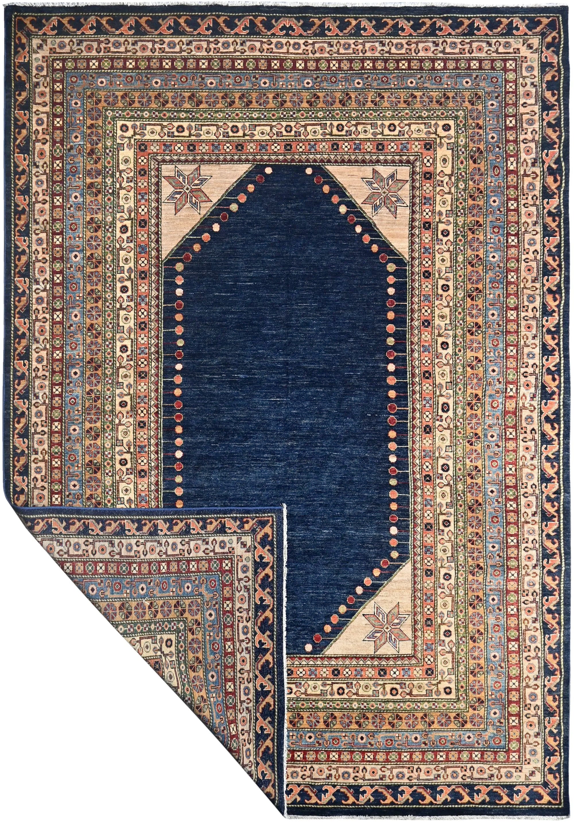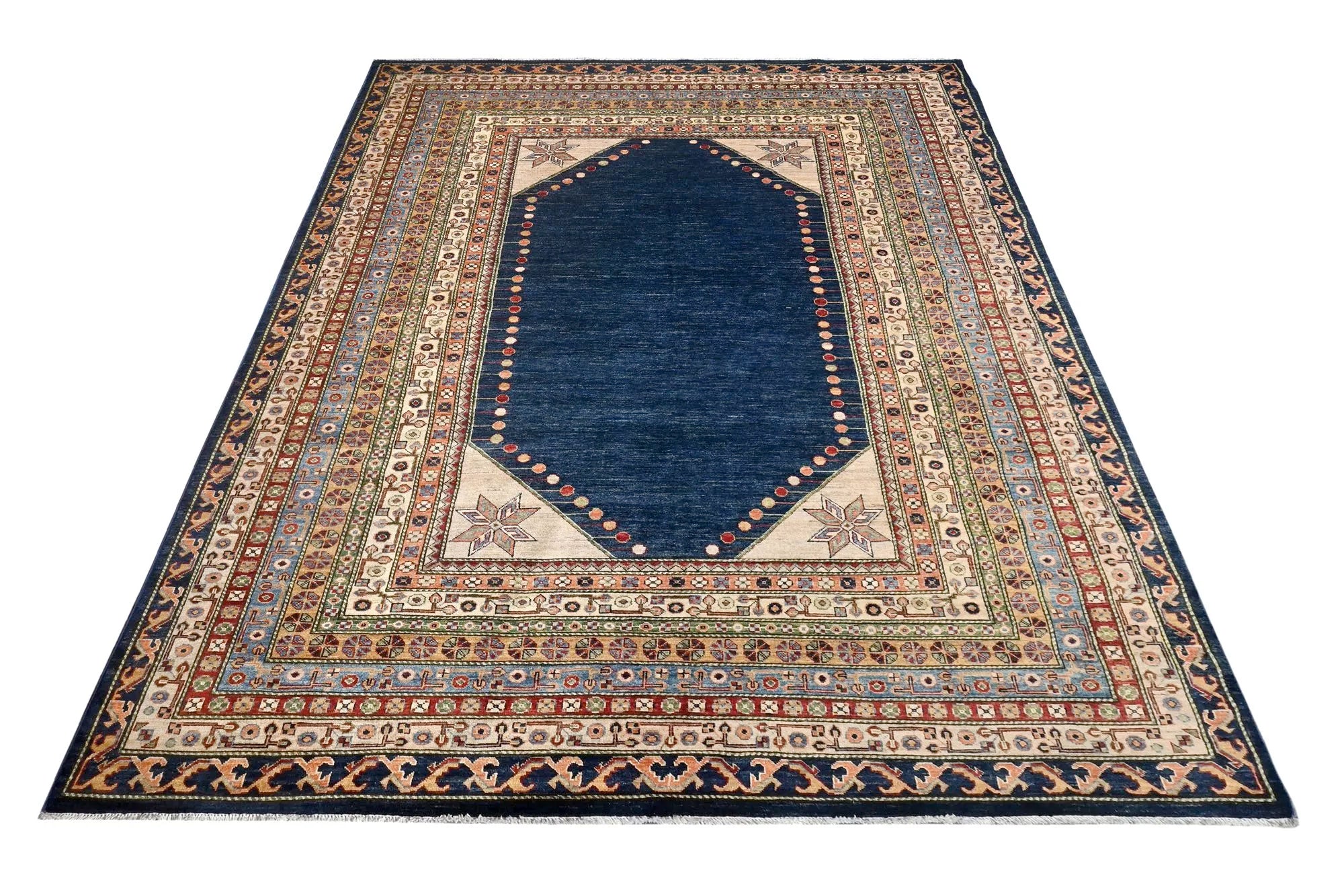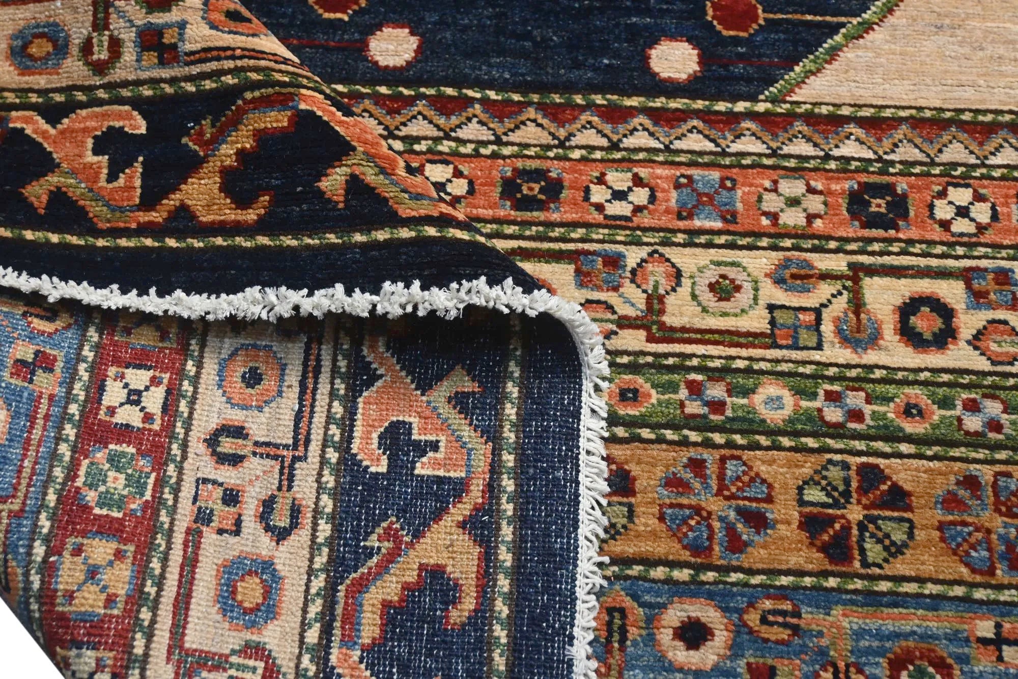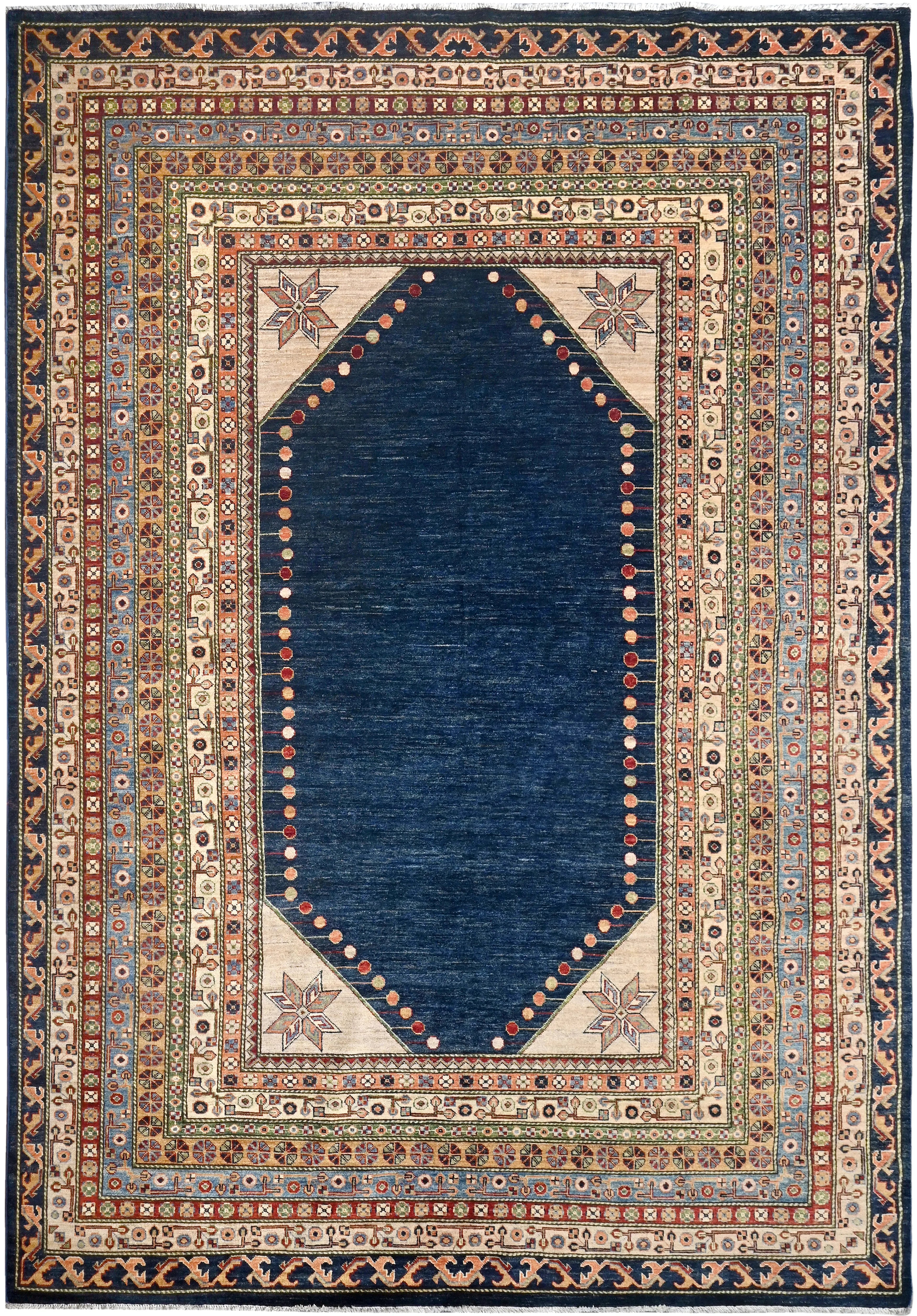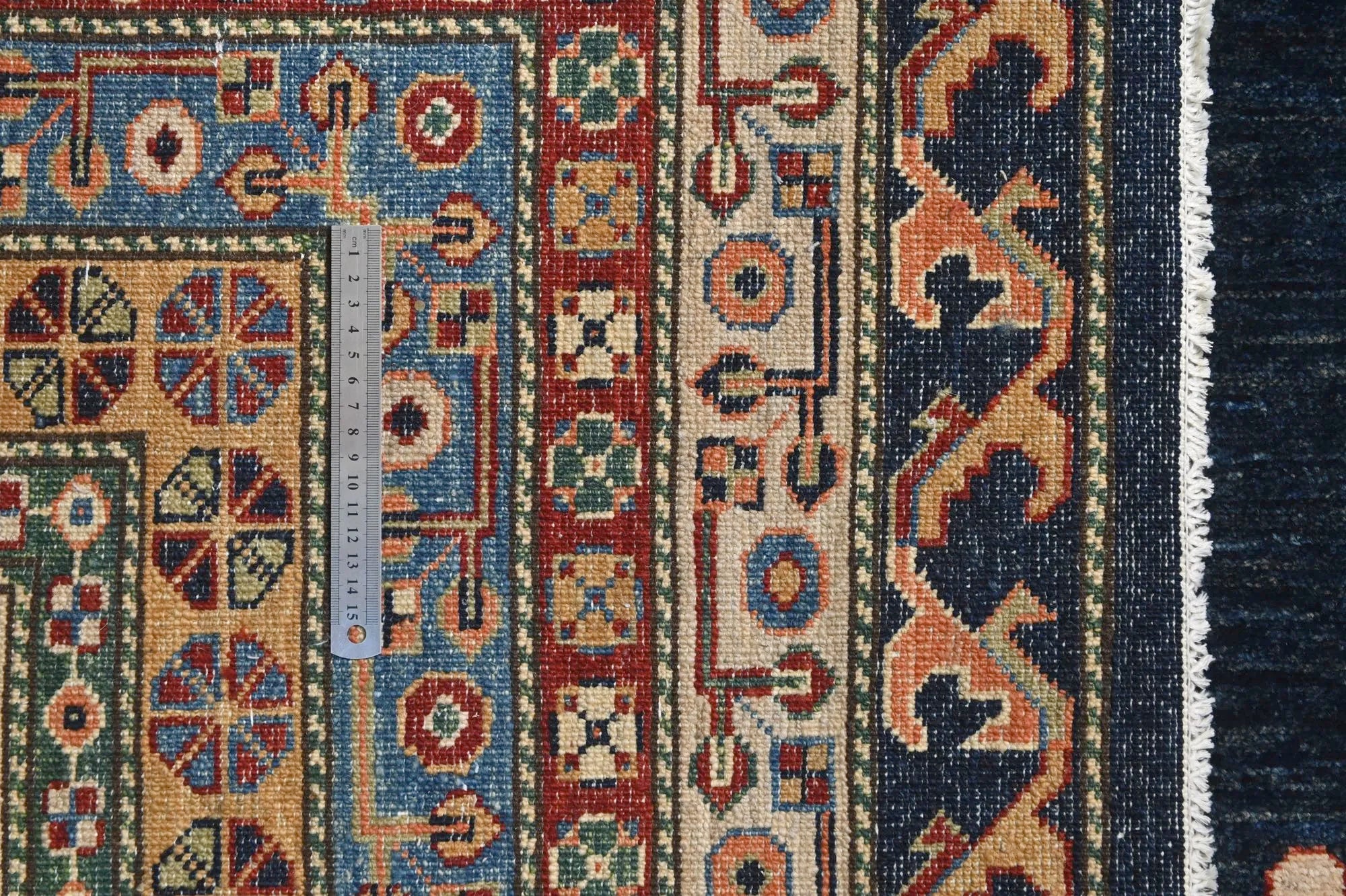 Dit exclusieve tapijt is geïnspireerd op de klassieke Perzische Heriz-motieven, maar opnieuw vormgegeven in een rustigere, modernere stijl met vrolijke en harmonieuze kleuren. Elk stuk is handgeknoopt in Afghanistan met handgesponnen wol en 100% plantaardige kleurstoffen, wat zorgt voor een natuurlijke glans en duurzame kleurechtheid. Hoewel traditionele Heriz-tapijten bekendstaan om hun krachtige geometrische vormen en markante medaillons, heeft dit moderne ontwerp een zachtere en eigentijdse uitstraling die perfect past in zowel klassieke als moderne interieurs. Zoekt u een handgeknoopt Heriz tapijt, een luxe Oosters design tapijt, of een tapijt met plantaardige verf? Dan is dit Heriz-geïnspireerde tapijt uit Afghanistan een uitstekende keuze — een elegant kunstwerk dat elke ruimte naar een hoger niveau tilt.