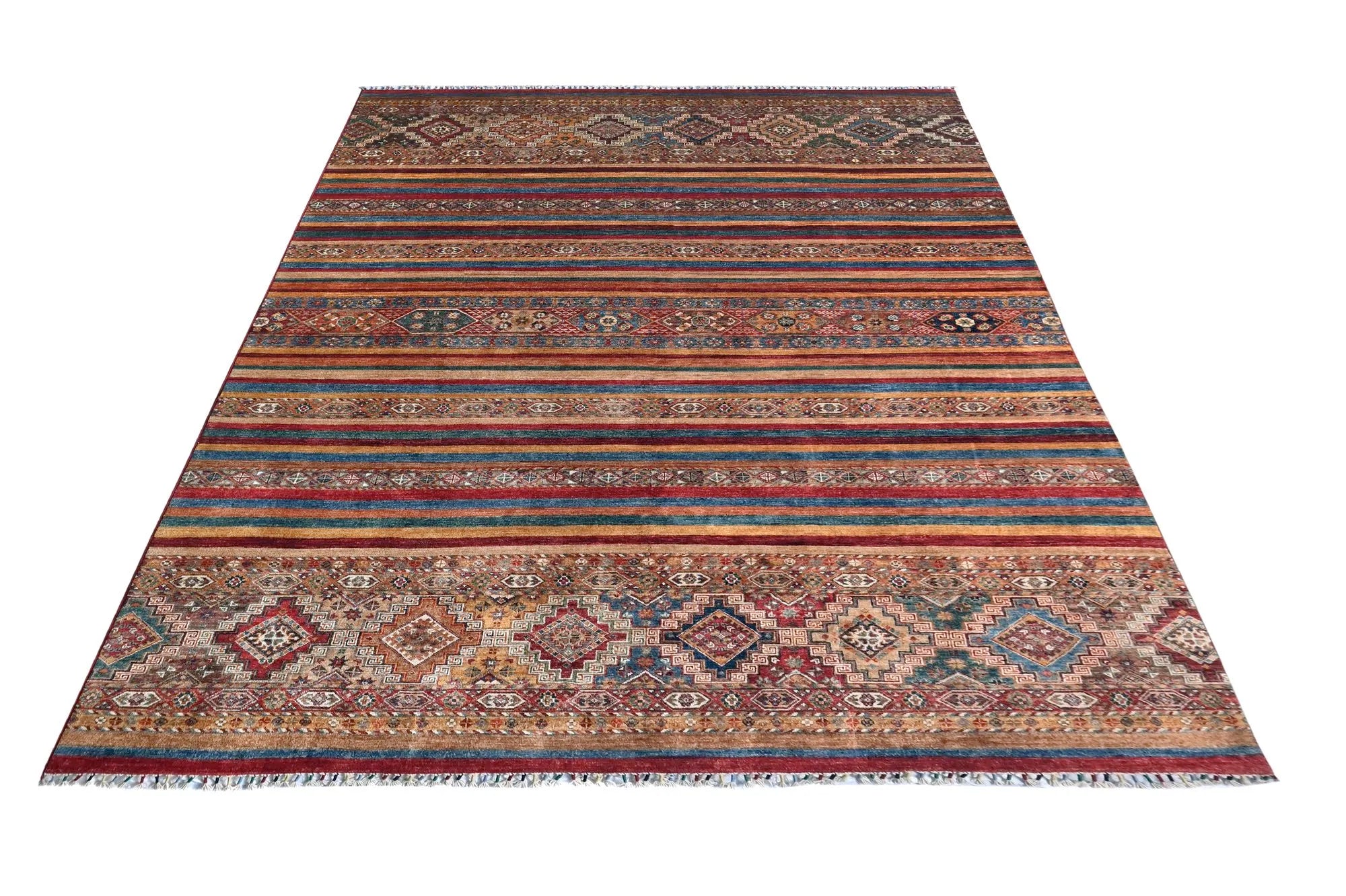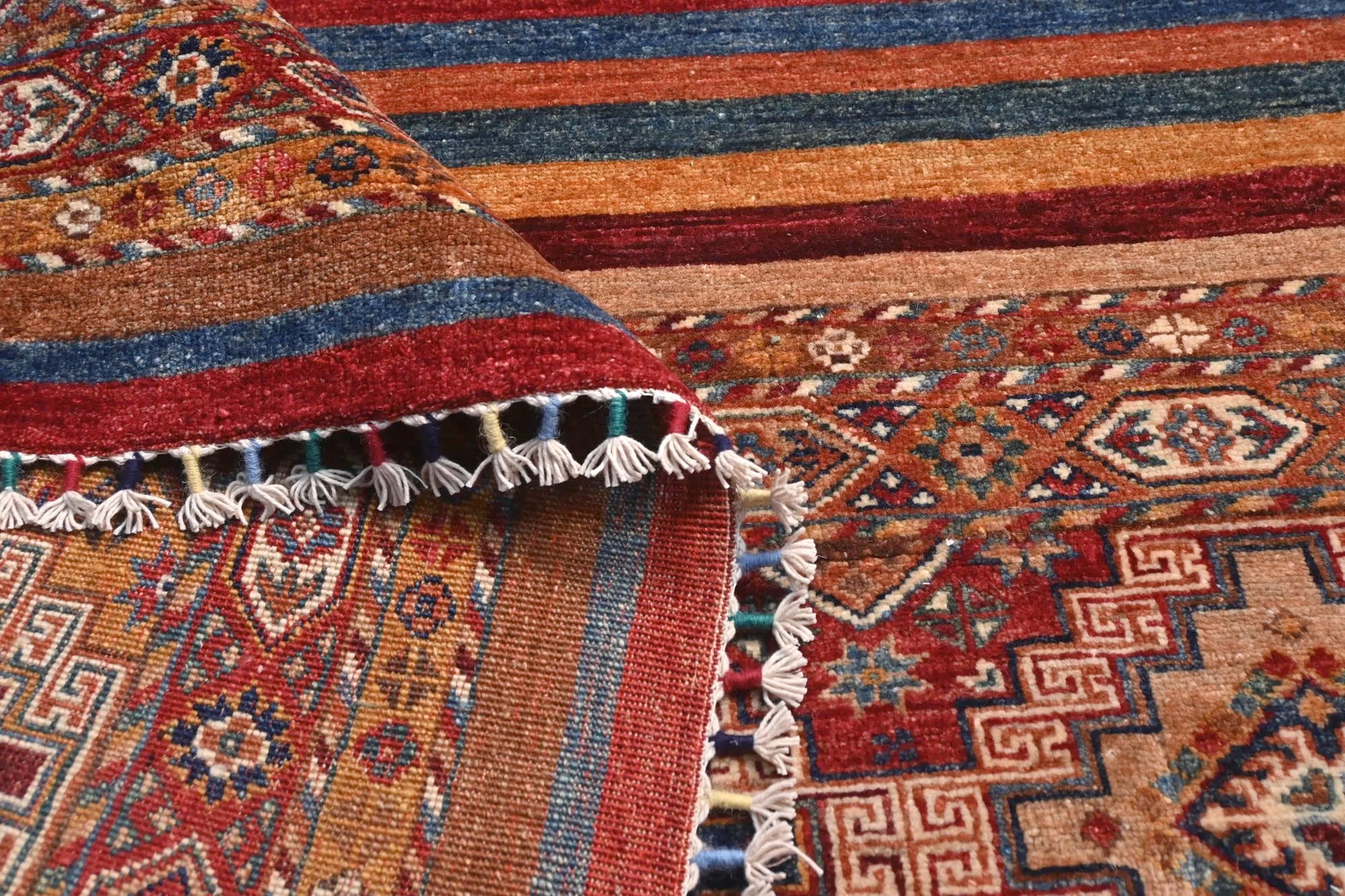 Al onze tapijten worden zorgvuldig en ambachtelijk met de hand vervaardigd. Dankzij deze handmatige productiemethode heeft ieder tapijt zijn eigen karakter en nuances. Deze individuele kenmerken waarborgen dat elk stuk een uniek kunstwerk op zichzelf is, waardoor het zich onderscheidt van massaproductie en een persoonlijke touch aan uw ruimte geeft.