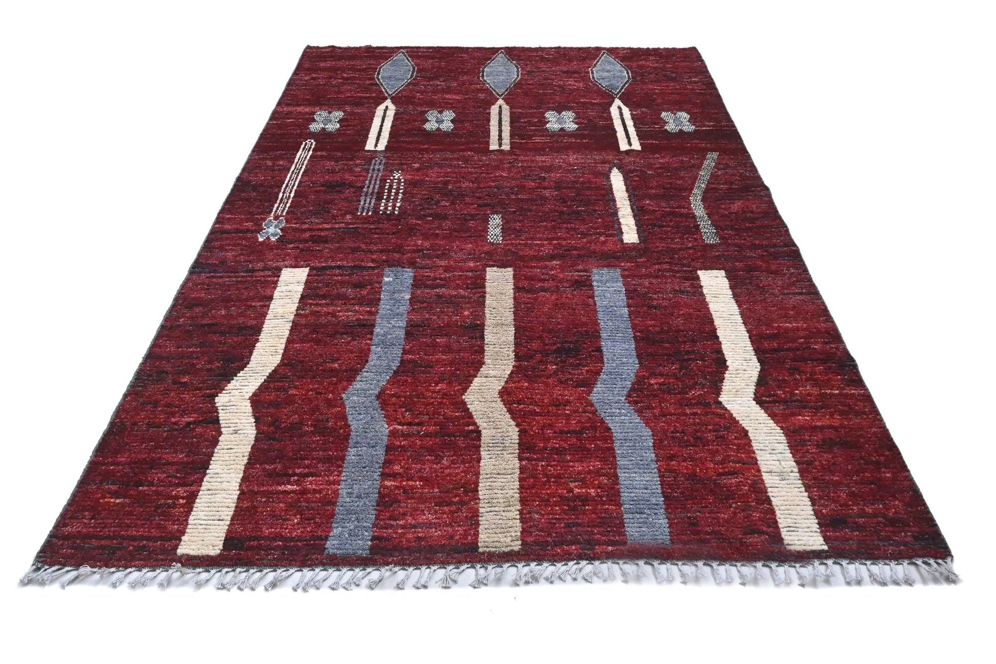 Marokkaanse , ook wel bekend als Berber , zijn handgeweven gemaakt door de Berbervolkeren van Marokko. Er zijn ook verkopers of producenten in India die vergelijkbare aanbieden. Deze staan bekend om hun unieke stijl, originaliteit en diversiteit in ontwerp. Marokkaanse worden traditioneel gemaakt van natuurlijke materialen zoals schapenwol of in sommige gevallen kameelwol. Deze materialen zorgen voor een zachte en duurzame structuur. De patronen op Marokkaanse variëren afhankelijk van de regio en stam, maar gemeenschappelijke elementen zijn geometrische patronen, lijnen en symbolen die diepe culturele en symbolische betekenissen hebben voor de Berberbevolking. Het kleurenpalet is vaak natuurlijk en kan aardetinten bevatten zoals beige, grijs, zwart, bruin, evenals accentkleuren zoals blauw, groen of rood. Marokkaanse staan bekend om hun rustieke schoonheid en unieke charme. Hun grove, dikke structuur geeft ze een robuust gevoel dat zowel in traditionele als moderne interieurs past. Deze zijn vaak beroemd om hun shaggy of langharige te x turen, wat ze een warme en gezellige uitstraling geeft.