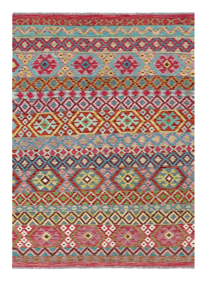 Een meesterwerk van Afghaans vakmanschap met Kaukasische inspiratie. Kelim Chobi- zijn een prachtig voorbeeld van traditioneel Afghaans vakmanschap, waarbij kwaliteit en esthetische verfijning worden gecombineerd. Deze worden op unieke wijze met de hand geweven in Afghanistan en dragen een rijke geschiedenis van ambacht met zich mee, waarbij traditionele technieken door generaties heen zijn overgedragen. Wat Kelim Chobi- bijzonder maakt, is hun onderscheidende ontwerp, dat sterk beïnvloed is door Kaukasische patronen. De geometrische vormen en symmetrische patronen, die typerend zijn voor Kaukasische , geven Kelim Chobi- hun unieke en tijdloze karakter. De kleuren die in Kelim Chobi- worden gebruikt, zijn vaak subtiel en natuurlijk, waardoor ze een elegante en verfijnde uitstraling krijgen. Deze kleuren zijn afkomstig van natuurlijke verfstoffen, die niet alleen een duurzaam en authentiek kleurenpalet bieden, maar ook een diep respect weerspiegelen voor de natuur en traditionele methoden. Elk Kelim Chobi-tapijt is met de grootste zorg en precisie handgeweven, wat zorgt voor een hoge kwaliteit en duurzaamheid. De zijn platgeweven, wat hen een gladde oppervlakte geeft en ze zowel praktisch als eenvoudig te onderhouden maakt. Dankzij de combinatie van Afghaans vakmanschap en Kaukasisch design zijn Kelim Chobi- een populaire keuze voor wie op zoek is naar een prachtig en tijdloos decoratief element dat elke ruimte kan verfraaien. Deze zijn niet alleen functionele vloerbedekkingen, maar ook kunstwerken die een verhaal vertellen over traditie en cultuur. Als je op zoek bent naar een tapijt dat traditioneel vakmanschap combineert met een stijlvol ontwerp, dan zijn Kelim Chobi- een uitstekende keuze. Hun tijdloze schoonheid en duurzame kwaliteit maken ze een perfecte investering voor je huis.