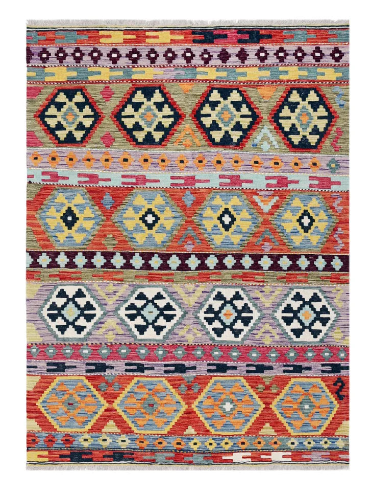 Een meesterwerk van Afghaans vakmanschap met Kaukasische inspiratie. Kelim Chobi- zijn een prachtig voorbeeld van traditioneel Afghaans vakmanschap, waarbij kwaliteit en esthetische verfijning worden gecombineerd. Deze worden op unieke wijze met de hand geweven in Afghanistan en dragen een rijke geschiedenis van ambacht met zich mee, waarbij traditionele technieken door generaties heen zijn overgedragen. Wat Kelim Chobi- bijzonder maakt, is hun onderscheidende ontwerp, dat sterk beïnvloed is door Kaukasische patronen. De geometrische vormen en symmetrische patronen, die typerend zijn voor Kaukasische , geven Kelim Chobi- hun unieke en tijdloze karakter. De kleuren die in Kelim Chobi- worden gebruikt, zijn vaak subtiel en natuurlijk, waardoor ze een elegante en verfijnde uitstraling krijgen. Deze kleuren zijn afkomstig van natuurlijke verfstoffen, die niet alleen een duurzaam en authentiek kleurenpalet bieden, maar ook een diep respect weerspiegelen voor de natuur en traditionele methoden. Elk Kelim Chobi-tapijt is met de grootste zorg en precisie handgeweven, wat zorgt voor een hoge kwaliteit en duurzaamheid. De zijn platgeweven, wat hen een gladde oppervlakte geeft en ze zowel praktisch als eenvoudig te onderhouden maakt. Dankzij de combinatie van Afghaans vakmanschap en Kaukasisch design zijn Kelim Chobi- een populaire keuze voor wie op zoek is naar een prachtig en tijdloos decoratief element dat elke ruimte kan verfraaien. Deze zijn niet alleen functionele vloerbedekkingen, maar ook kunstwerken die een verhaal vertellen over traditie en cultuur. Als je op zoek bent naar een tapijt dat traditioneel vakmanschap combineert met een stijlvol ontwerp, dan zijn Kelim Chobi- een uitstekende keuze. Hun tijdloze schoonheid en duurzame kwaliteit maken ze een perfecte investering voor je huis.