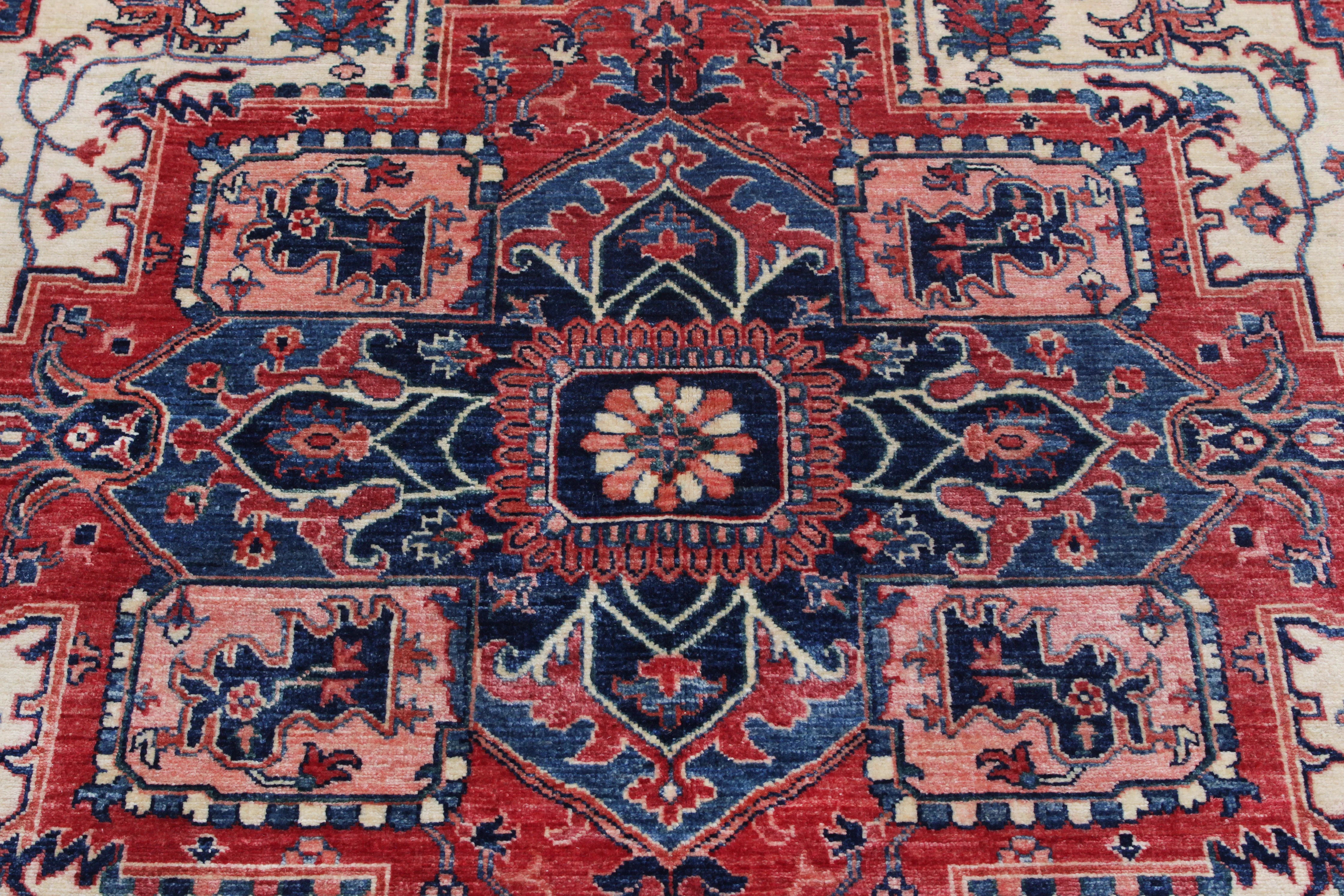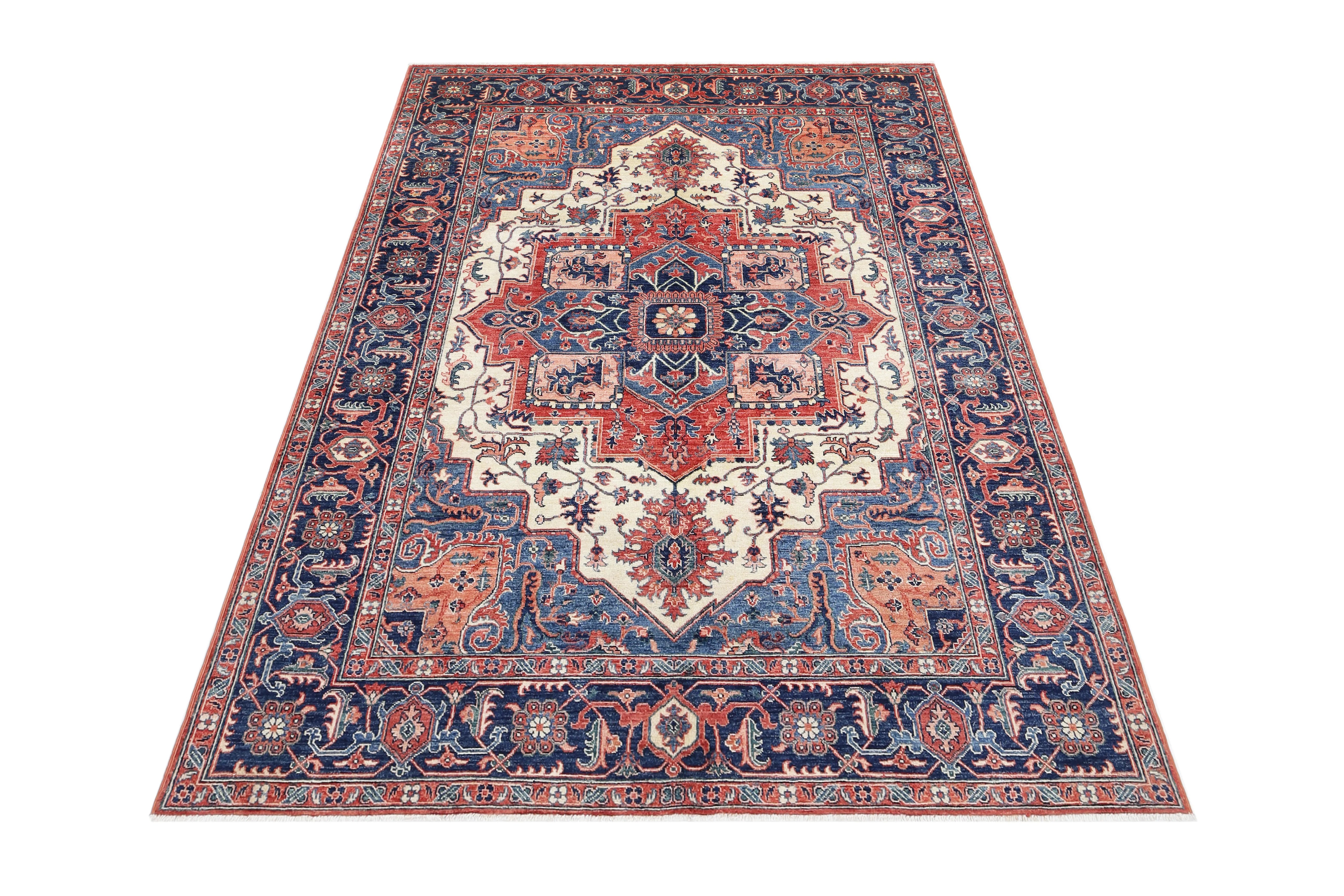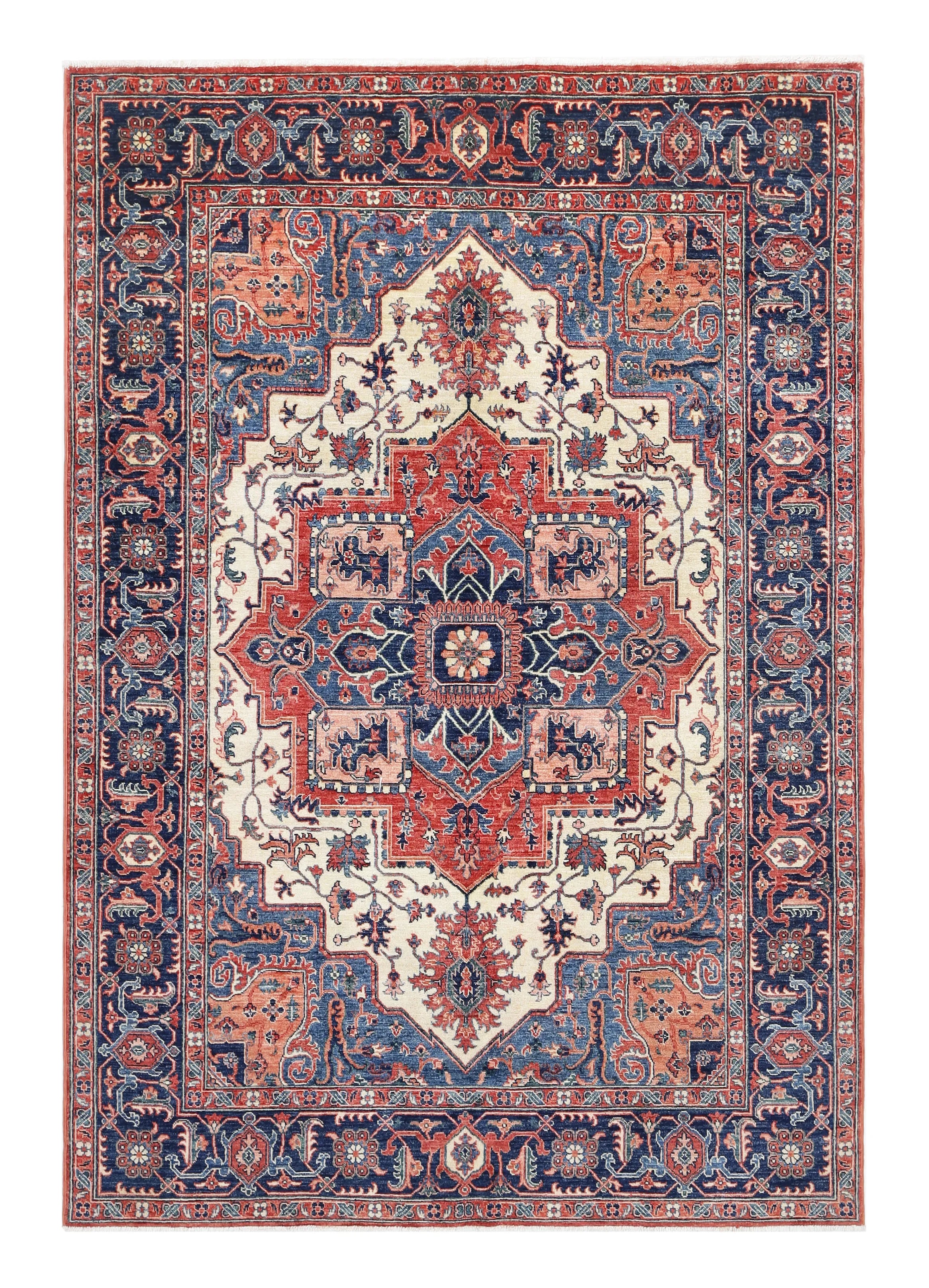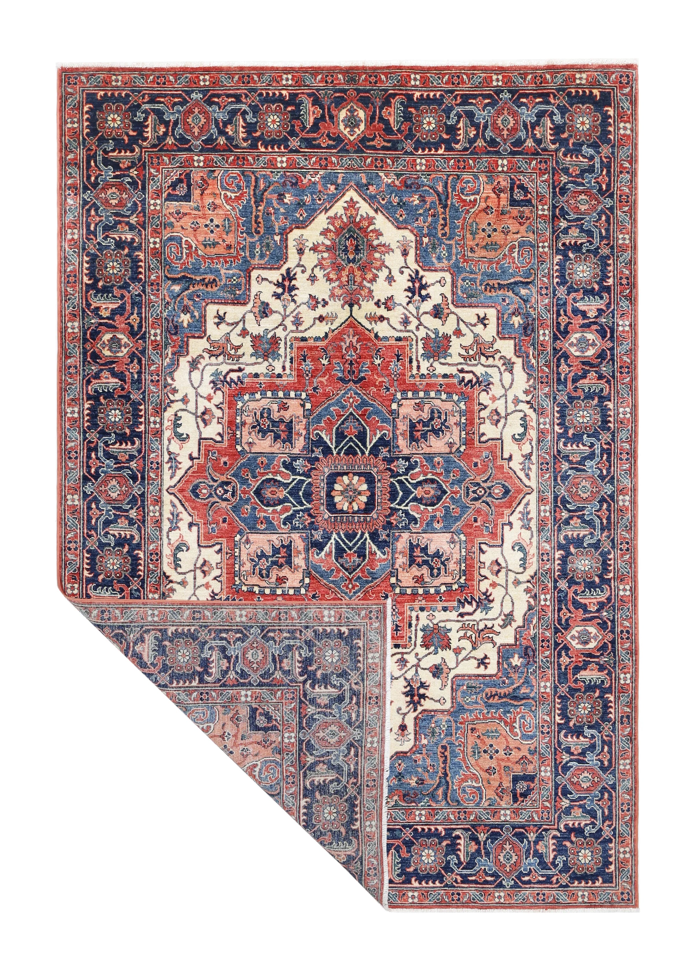 Heriz Royal is een meesterlijk handgeknoopt tapijt, geïnspireerd op de klassieke Perzische Heriz-tapijten. Vervaardigd in Afghanistan door ervaren ambachtslieden, met zeer dichte knopen die zelfs de oorspronkelijke Perzische Heriz-tapijten overtreffen in precisie en duurzaamheid. De handgesponnen wol geeft een natuurlijke glans en een zachte, stevige structuur. De plantgebaseerde kleurstoffen zorgen voor een harmonieuze, levendige kleur die prachtig veroudert met de tijd. Handgeknoopt van de beste handgesponnen wol. Natuurlijk geverfd met plantaardige kleurstoffen. Extra dicht geknoopt – duurzaam en exclusief. Een authentieke herinterpretatie van het tijdloze Perzische Heriz-design.