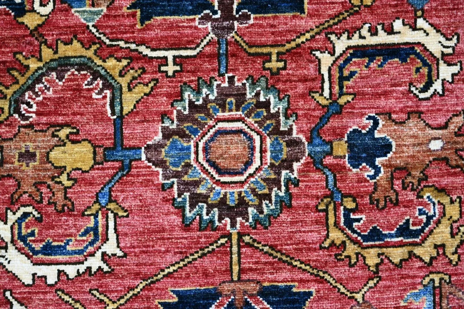 Heriz Royal is een meesterlijk handgeknoopt tapijt, geïnspireerd op de klassieke Perzische Heriz-tapijten. Vervaardigd in Afghanistan door ervaren ambachtslieden, met zeer dichte knopen die zelfs de oorspronkelijke Perzische Heriz-tapijten overtreffen in precisie en duurzaamheid. De handgesponnen wol geeft een natuurlijke glans en een zachte, stevige structuur. De plantgebaseerde kleurstoffen zorgen voor een harmonieuze, levendige kleur die prachtig veroudert met de tijd. Handgeknoopt van de beste handgesponnen wol. Natuurlijk geverfd met plantaardige kleurstoffen. Extra dicht geknoopt – duurzaam en exclusief. Een authentieke herinterpretatie van het tijdloze Perzische Heriz-design.