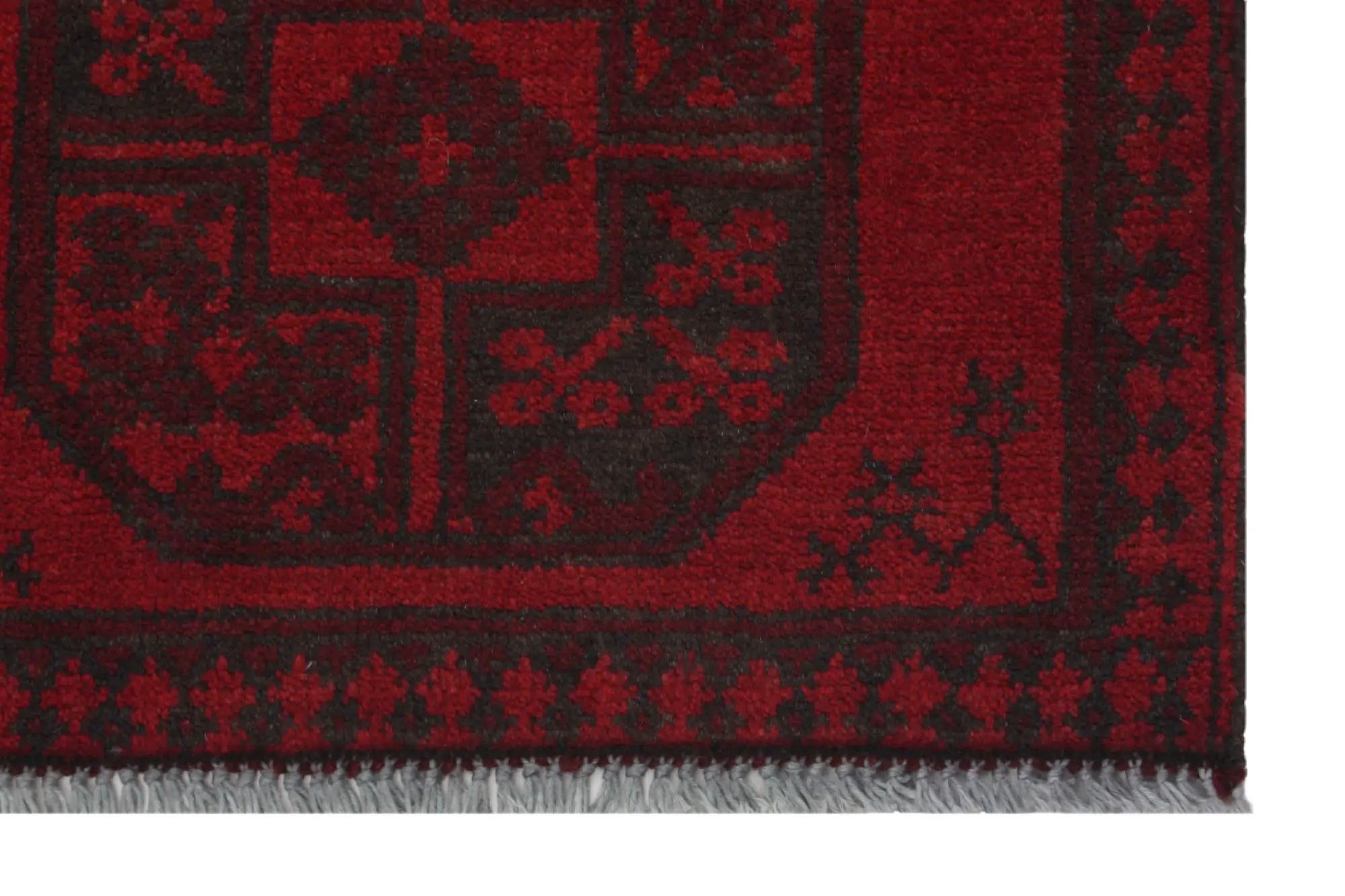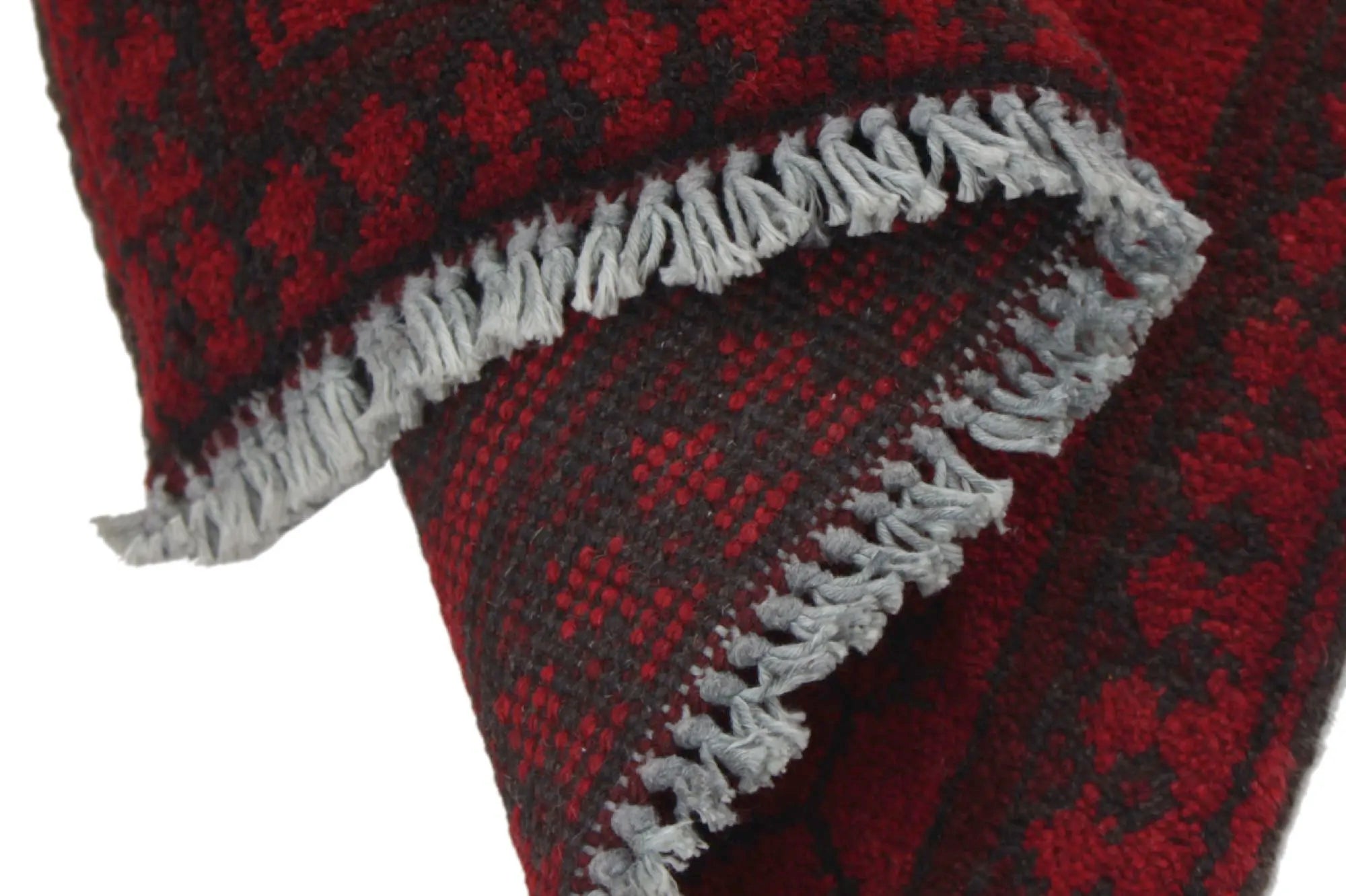 Ontdek dit prachtige, handgeknoopte Akche-tapijt uit Afghanistan, uitgevoerd in diepe rode en zwarte tinten die warmte en elegantie in elke ruimte brengen. Het is vervaardigd van 100% zuivere wol, inclusief de franjes, en bevat geen synthetische materialen, wat zorgt för een natuurlijke, zachte en duurzame kwaliteit. Het traditionele “olifantenpoot”-motief, typisch voor Akche-tapijten, geeft een tijdloze en cultureel rijke uitstraling. Een perfecte keuze voor wie een tapijt zoekt dat vakmanschap, karakter en klassieke oosterse schoonheid combineert.