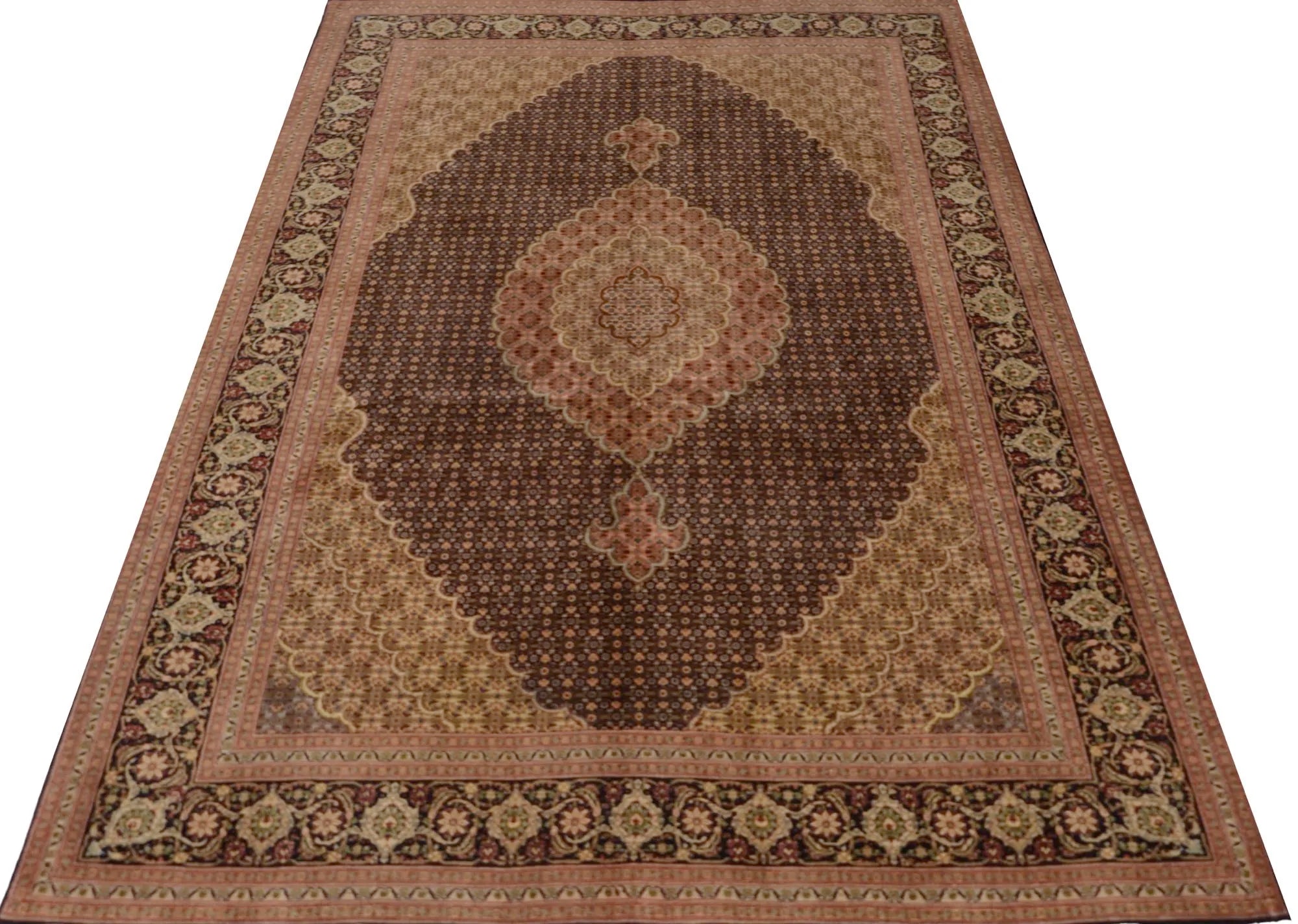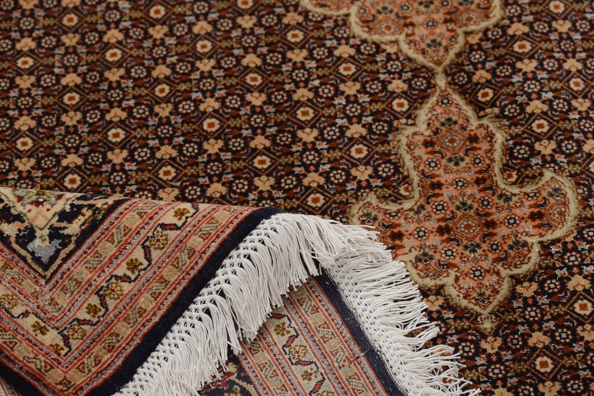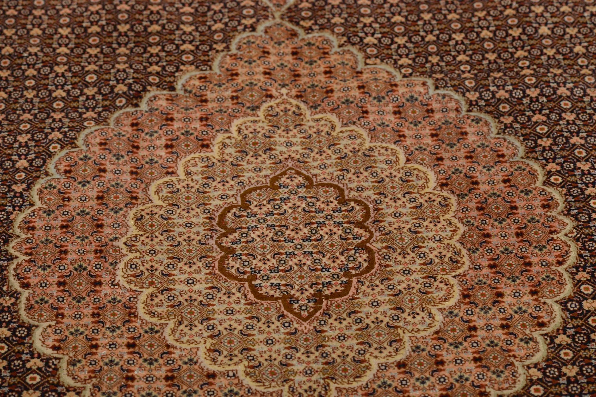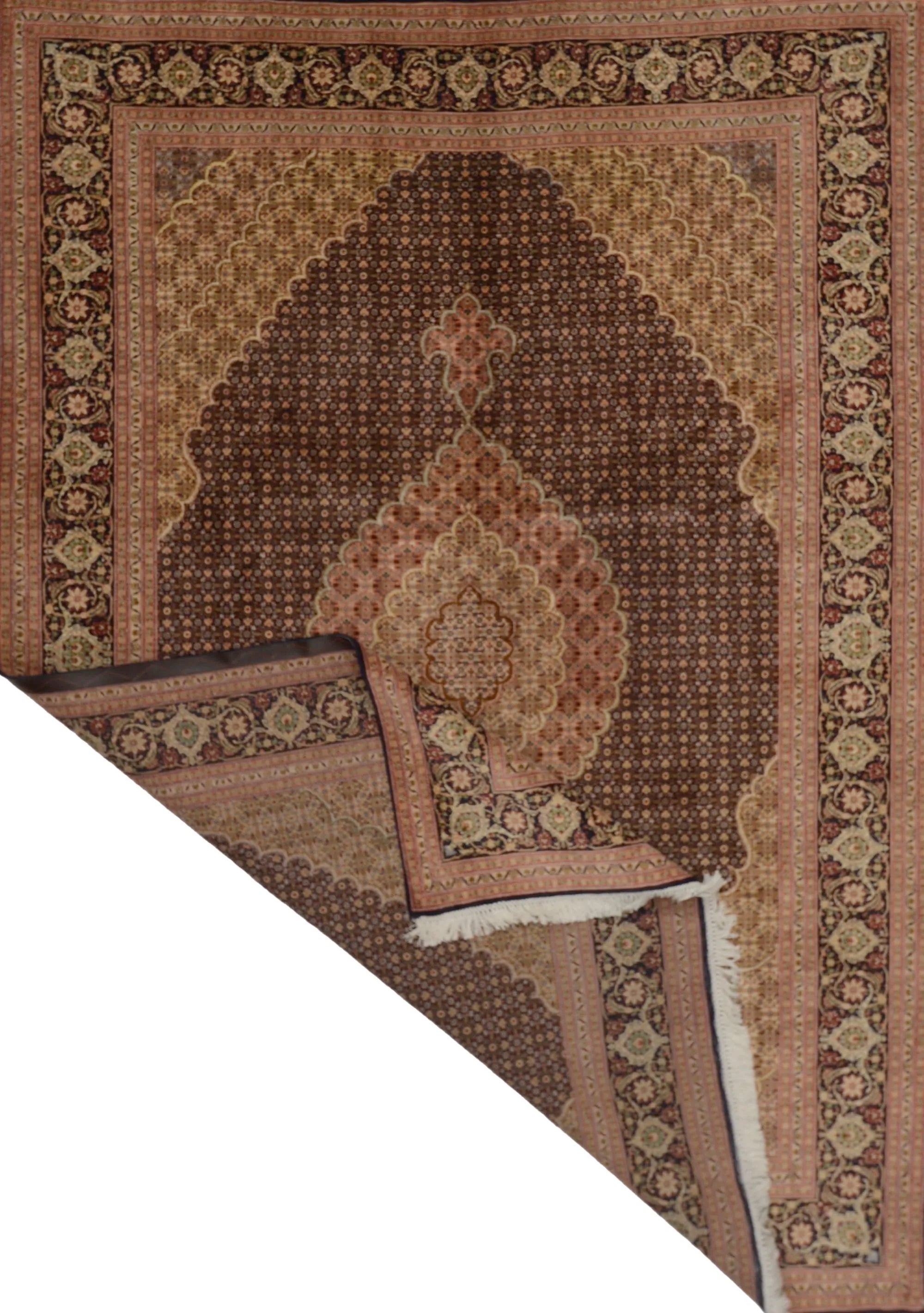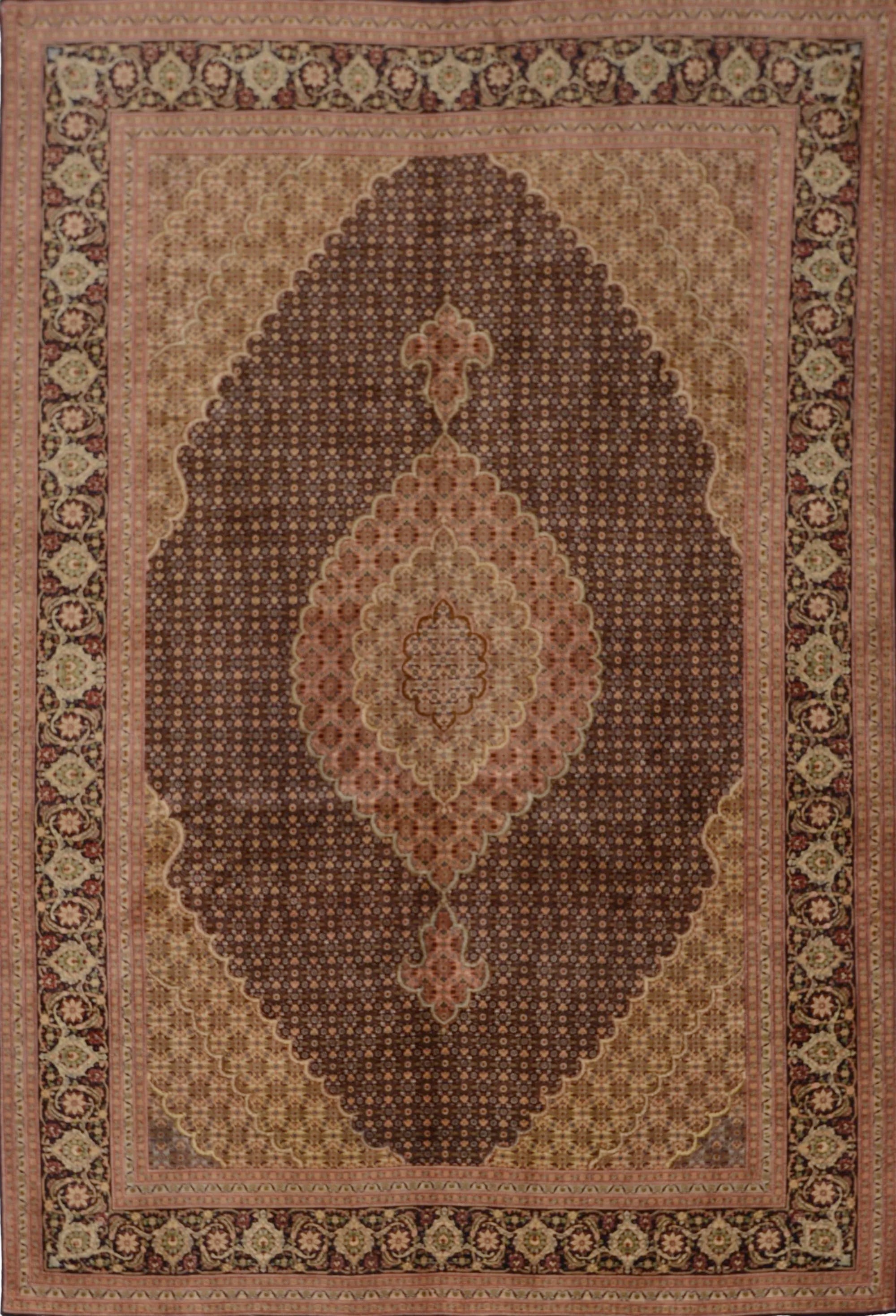 Tabriz 50 Raj is een van de meest bewonderde en verfijnde tapijtkwaliteiten uit de beroemde weefstad Tabriz in het noordwesten van Iran. De term "Raj" verwijst naar het aantal knopen binnen 7 cm, en 50 Raj staat voor een zeer hoge knoopdichtheid. Hierdoor kunnen de patronen met uitzonderlijke precisie en fijne details worden geweven. Knoopdichtheid: ca. 400.000–500.000 knopen/m² Materialen: fijne handgesponnen wol, vaak gecombineerd met zijdedetails Techniek: Perzische dubbele knoop, wat extra kracht en duurzaamheid biedt.