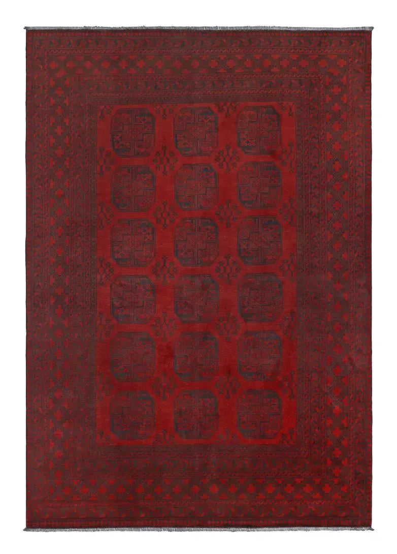 Ontdek dit prachtige, handgeknoopte Akche-tapijt uit Afghanistan, uitgevoerd in diepe rode en zwarte tinten die warmte en elegantie in elke ruimte brengen. Het is vervaardigd van 100% zuivere wol, inclusief de franjes, en bevat geen synthetische materialen, wat zorgt för een natuurlijke, zachte en duurzame kwaliteit. Het traditionele “olifantenpoot”-motief, typisch voor Akche-tapijten, geeft een tijdloze en cultureel rijke uitstraling. Een perfecte keuze voor wie een tapijt zoekt dat vakmanschap, karakter en klassieke oosterse schoonheid combineert.