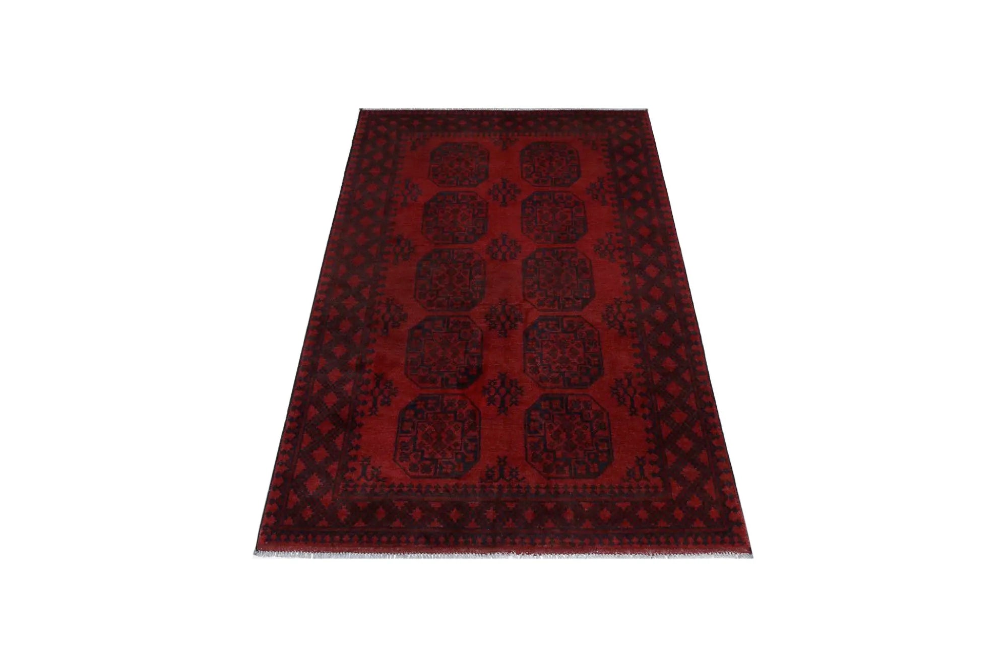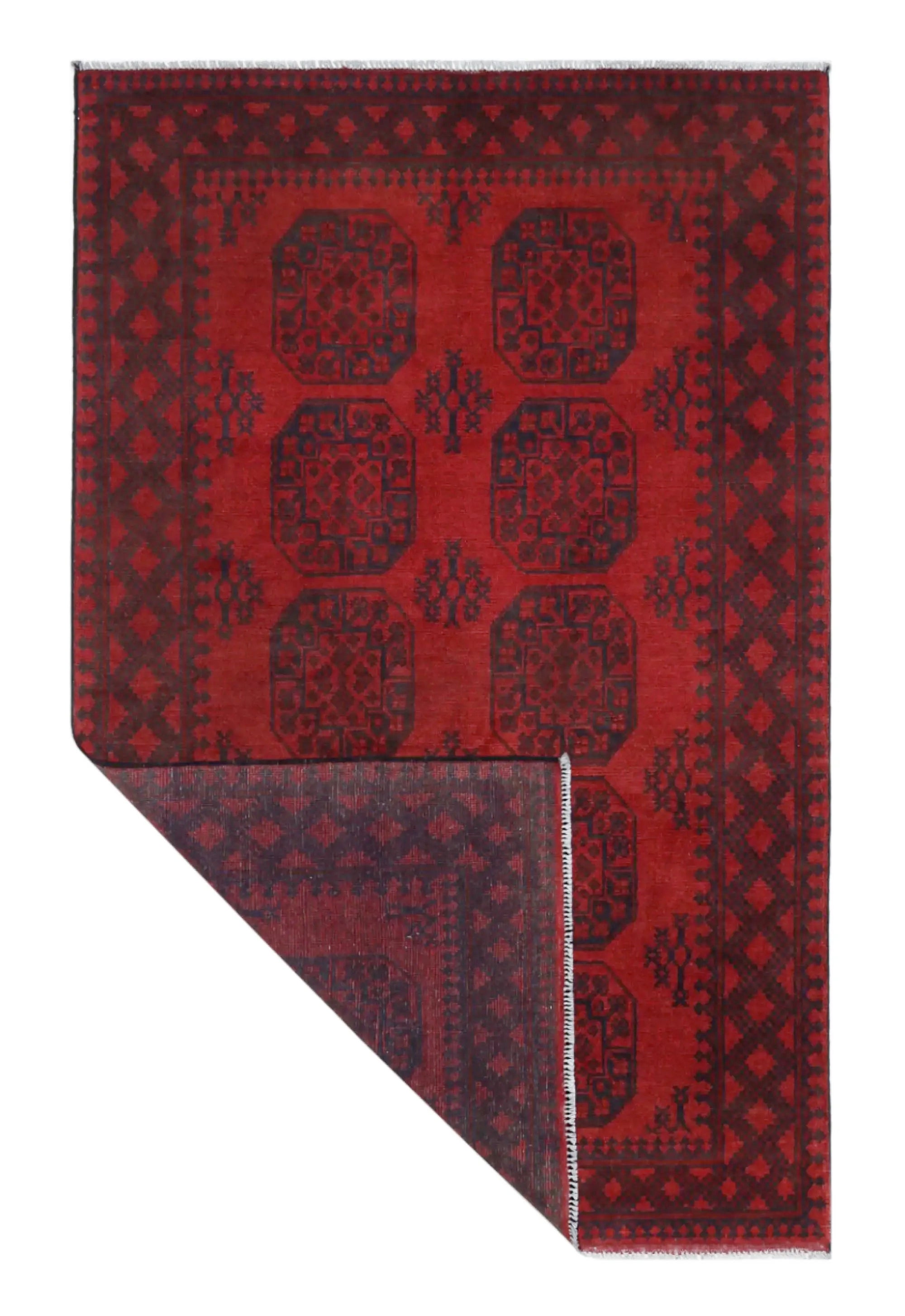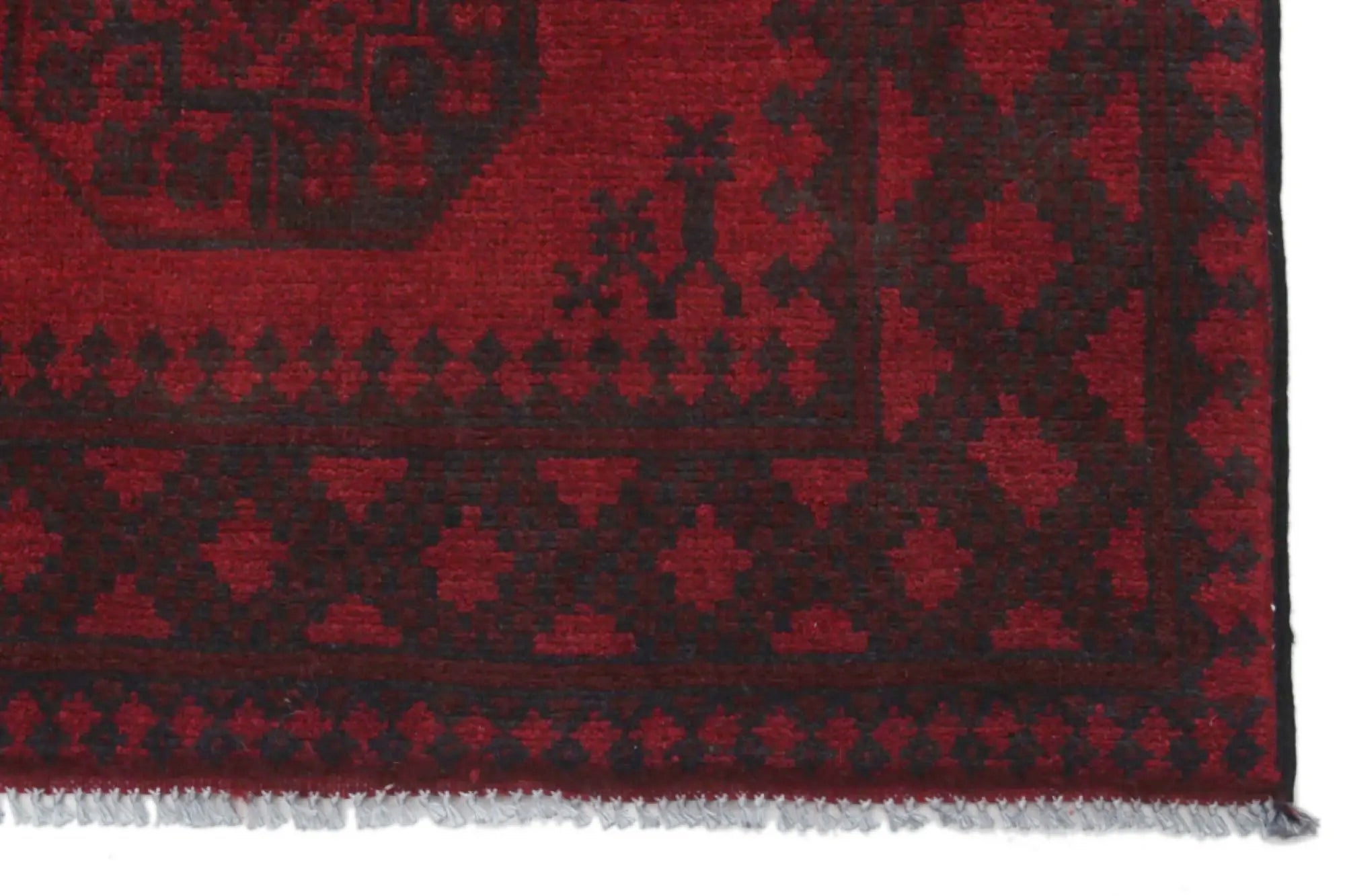 Ontdek dit prachtige, handgeknoopte Akche-tapijt uit Afghanistan, uitgevoerd in diepe rode en zwarte tinten die warmte en elegantie in elke ruimte brengen. Het is vervaardigd van 100% zuivere wol, inclusief de franjes, en bevat geen synthetische materialen, wat zorgt för een natuurlijke, zachte en duurzame kwaliteit. Het traditionele “olifantenpoot”-motief, typisch voor Akche-tapijten, geeft een tijdloze en cultureel rijke uitstraling. Een perfecte keuze voor wie een tapijt zoekt dat vakmanschap, karakter en klassieke oosterse schoonheid combineert.