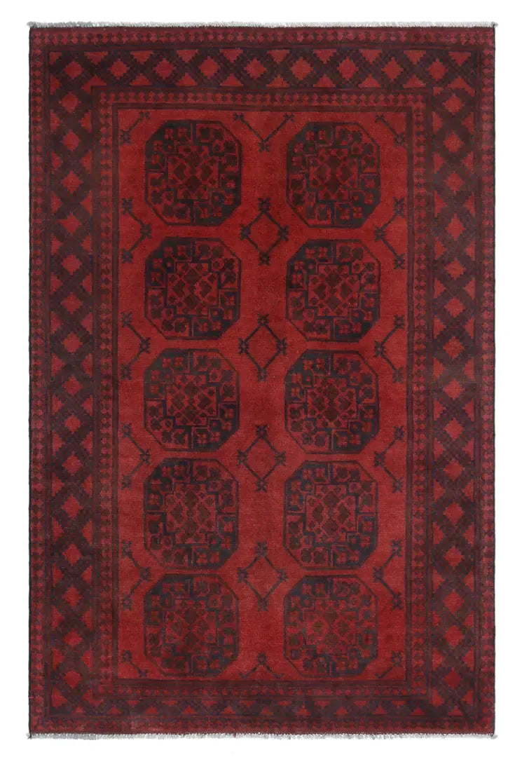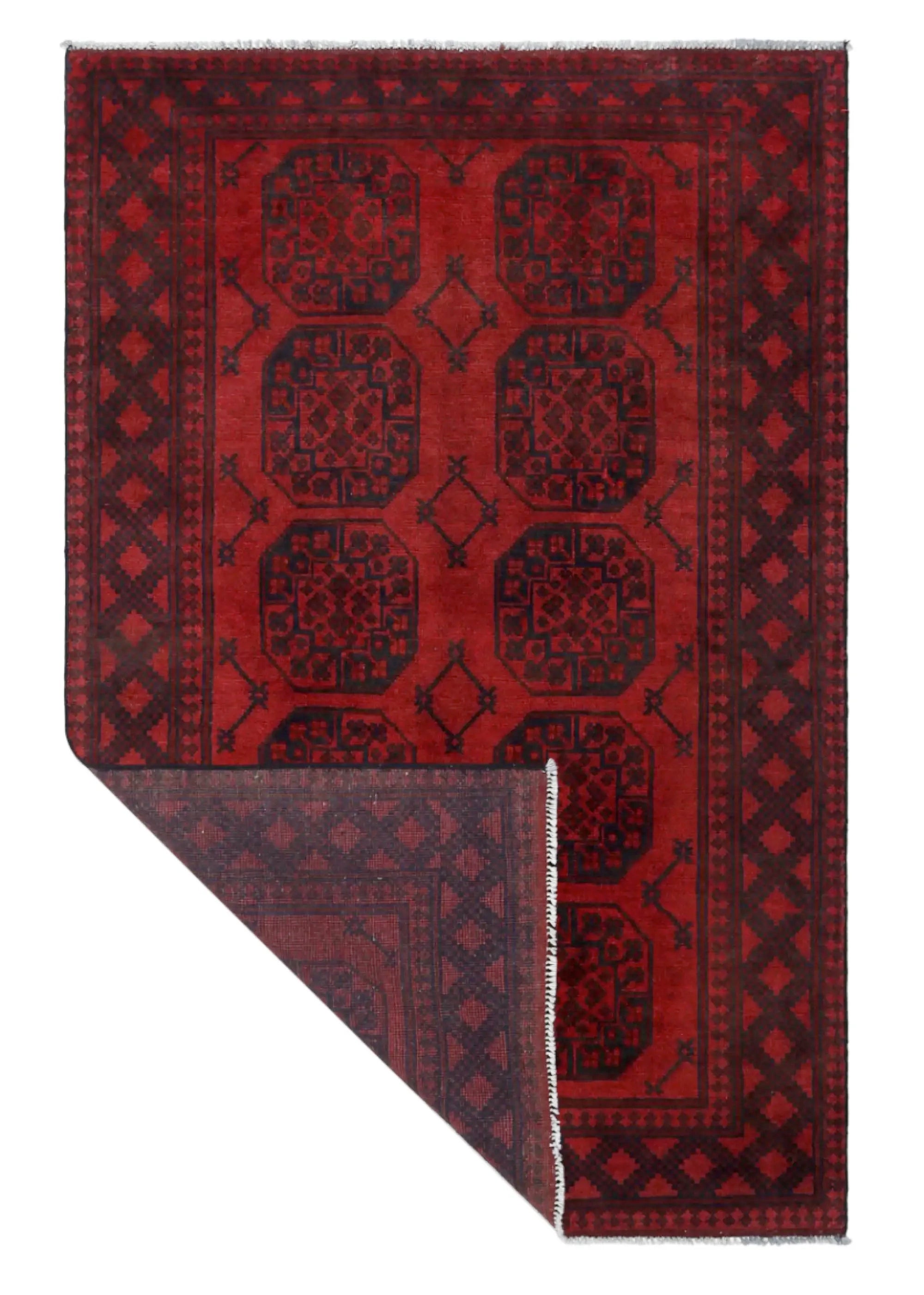 Ontdek dit prachtige, handgeknoopte Akche-tapijt uit Afghanistan, uitgevoerd in diepe rode en zwarte tinten die warmte en elegantie in elke ruimte brengen. Het is vervaardigd van 100% zuivere wol, inclusief de franjes, en bevat geen synthetische materialen, wat zorgt för een natuurlijke, zachte en duurzame kwaliteit. Het traditionele “olifantenpoot”-motief, typisch voor Akche-tapijten, geeft een tijdloze en cultureel rijke uitstraling. Een perfecte keuze voor wie een tapijt zoekt dat vakmanschap, karakter en klassieke oosterse schoonheid combineert.