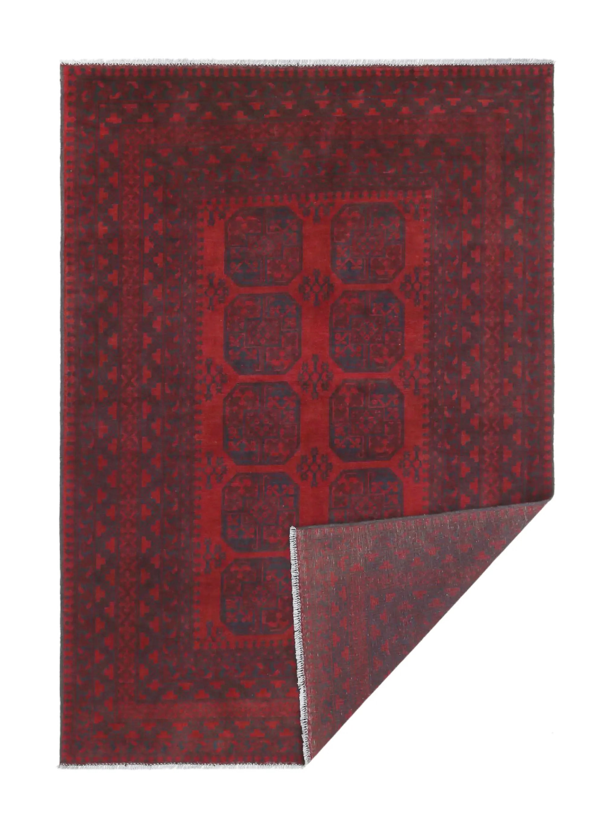 Ontdek dit prachtige, handgeknoopte Akche-tapijt uit Afghanistan, uitgevoerd in diepe rode en zwarte tinten die warmte en elegantie in elke ruimte brengen. Het is vervaardigd van 100% zuivere wol, inclusief de franjes, en bevat geen synthetische materialen, wat zorgt för een natuurlijke, zachte en duurzame kwaliteit. Het traditionele “olifantenpoot”-motief, typisch voor Akche-tapijten, geeft een tijdloze en cultureel rijke uitstraling. Een perfecte keuze voor wie een tapijt zoekt dat vakmanschap, karakter en klassieke oosterse schoonheid combineert.