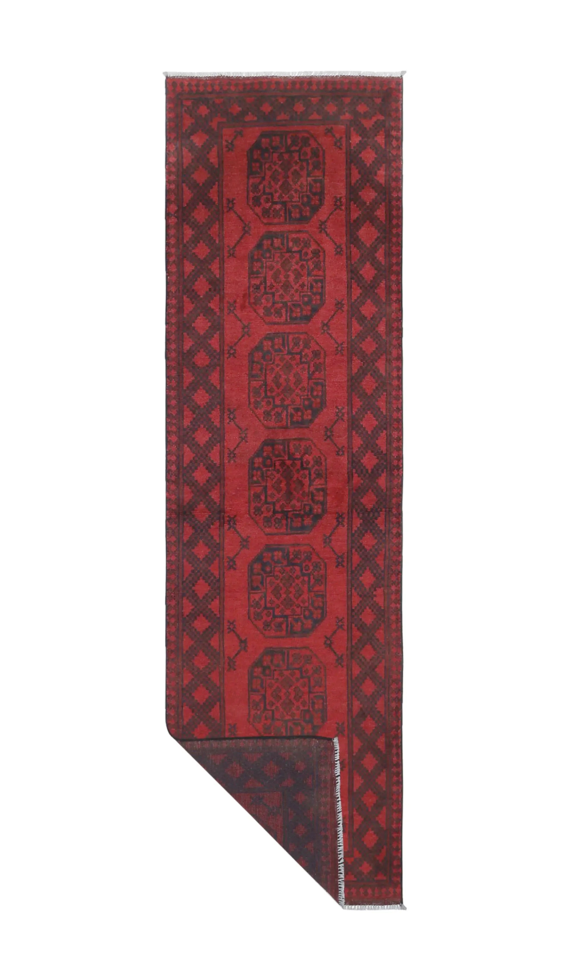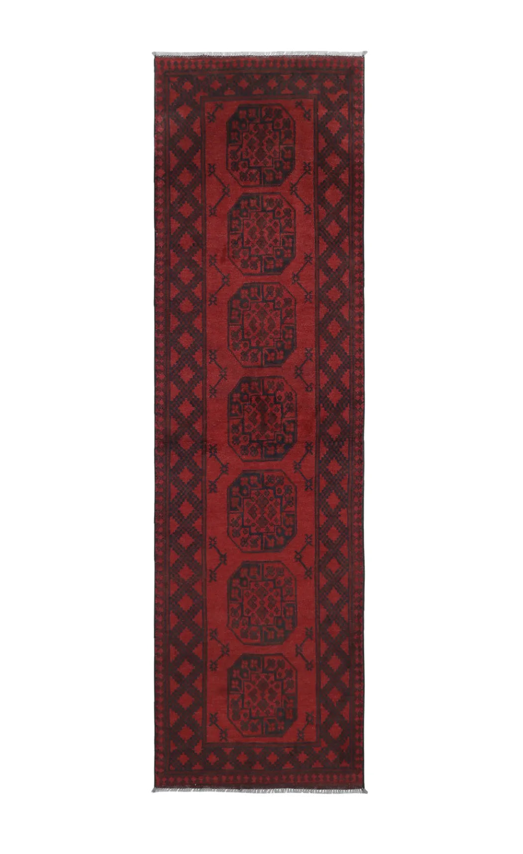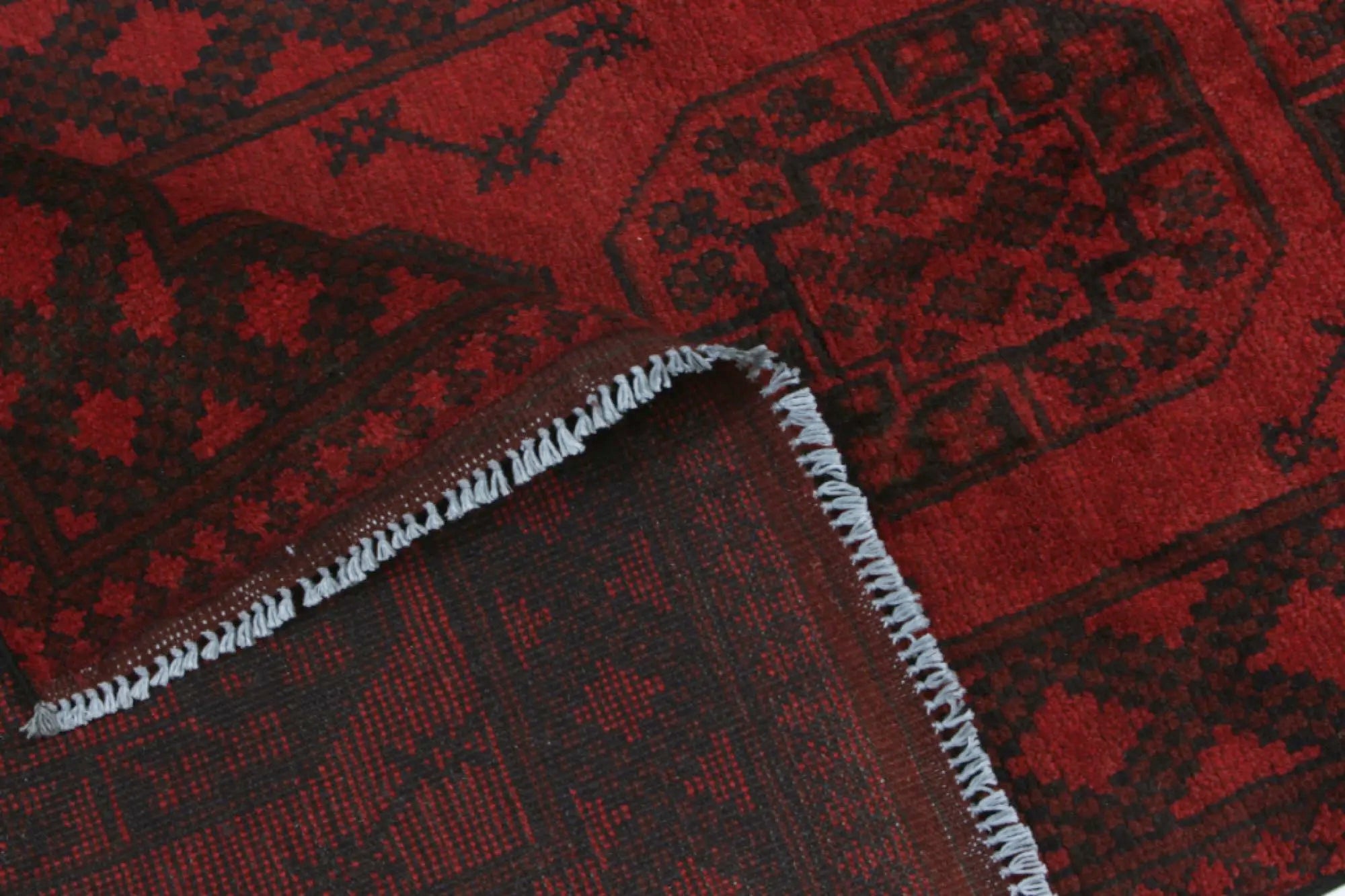 Ontdek dit prachtige, handgeknoopte Akche-tapijt uit Afghanistan, uitgevoerd in diepe rode en zwarte tinten die warmte en elegantie in elke ruimte brengen. Het is vervaardigd van 100% zuivere wol, inclusief de franjes, en bevat geen synthetische materialen, wat zorgt för een natuurlijke, zachte en duurzame kwaliteit. Het traditionele “olifantenpoot”-motief, typisch voor Akche-tapijten, geeft een tijdloze en cultureel rijke uitstraling. Een perfecte keuze voor wie een tapijt zoekt dat vakmanschap, karakter en klassieke oosterse schoonheid combineert.