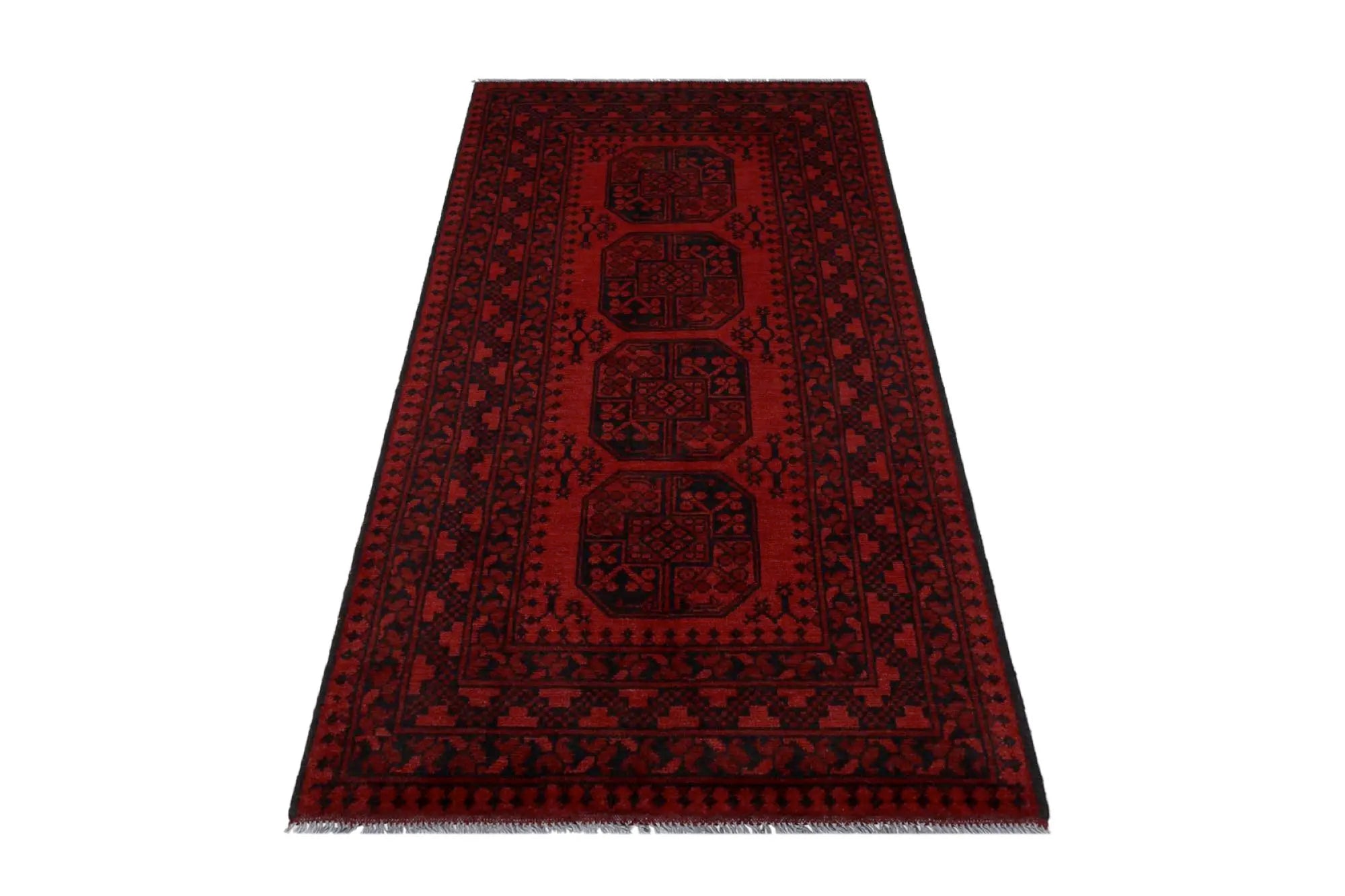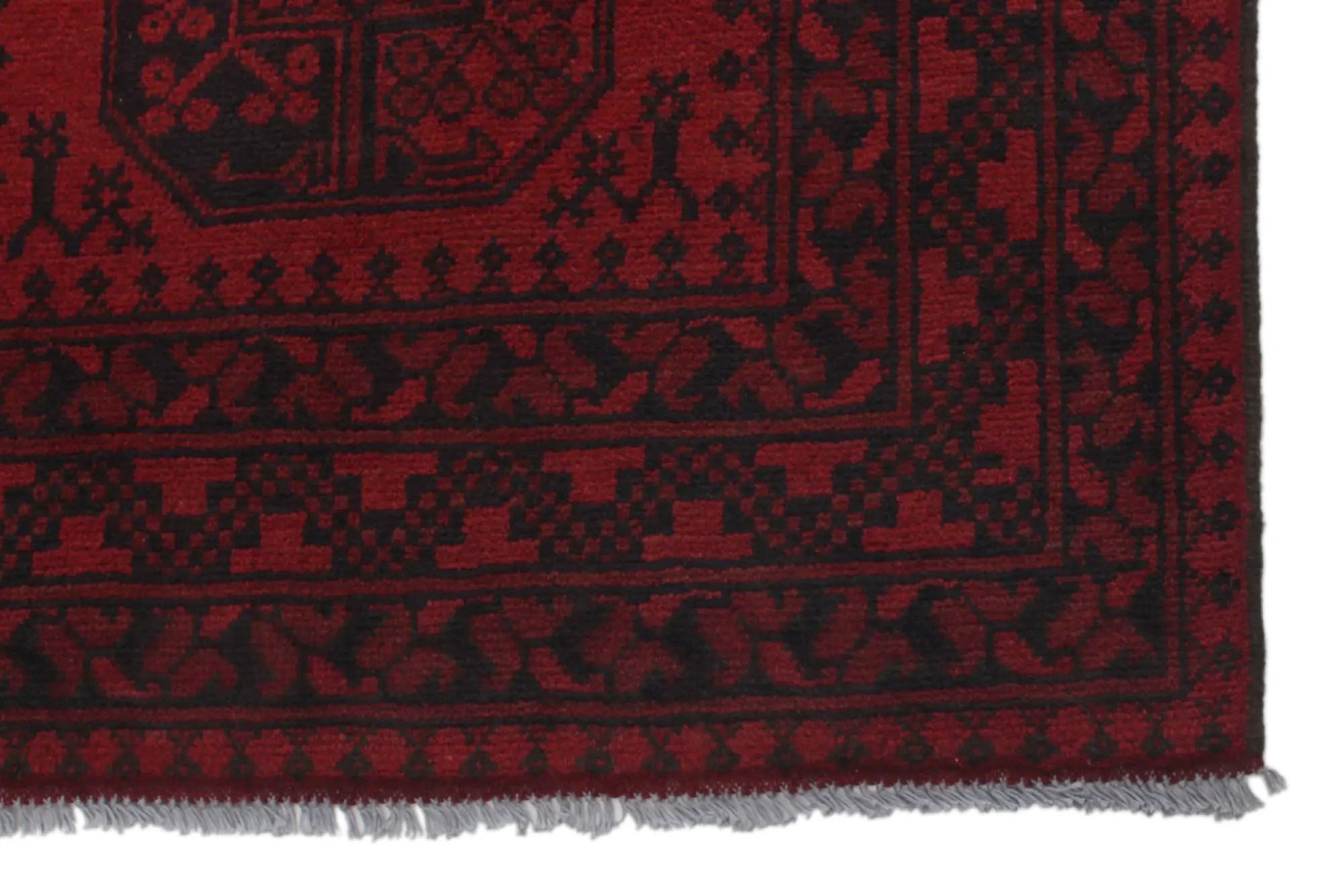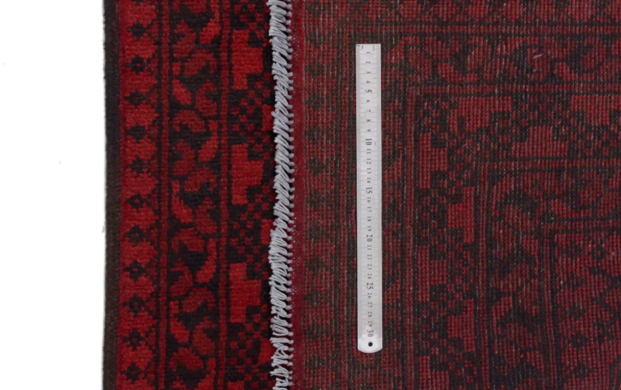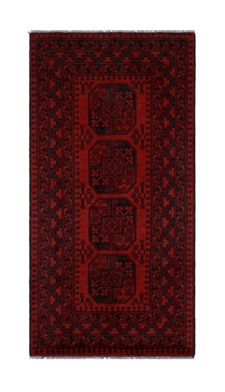 Ontdek dit prachtige, handgeknoopte Akche-tapijt uit Afghanistan, uitgevoerd in diepe rode en zwarte tinten die warmte en elegantie in elke ruimte brengen. Het is vervaardigd van 100% zuivere wol, inclusief de franjes, en bevat geen synthetische materialen, wat zorgt för een natuurlijke, zachte en duurzame kwaliteit. Het traditionele “olifantenpoot”-motief, typisch voor Akche-tapijten, geeft een tijdloze en cultureel rijke uitstraling. Een perfecte keuze voor wie een tapijt zoekt dat vakmanschap, karakter en klassieke oosterse schoonheid combineert.