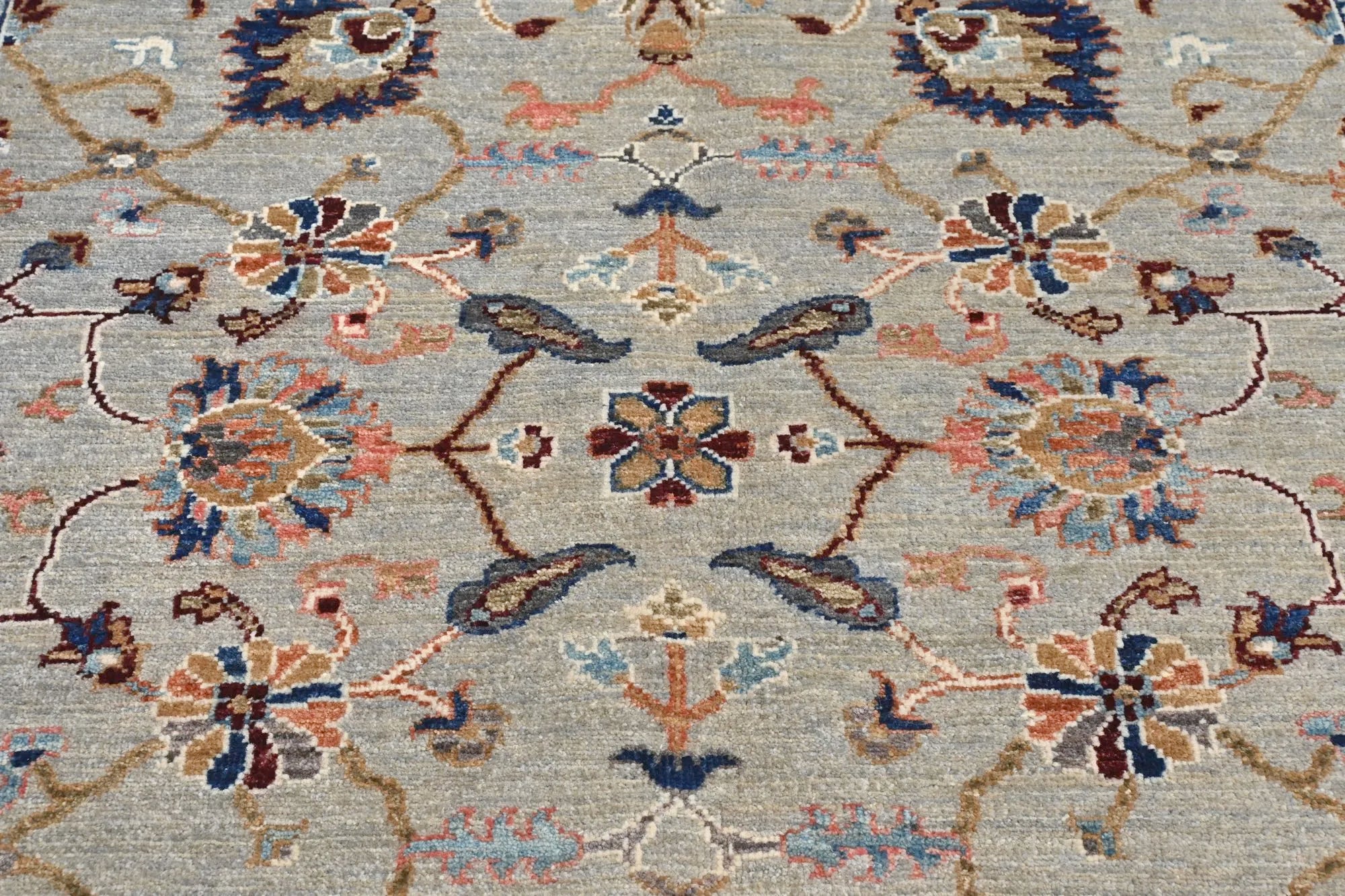 Ziegler-tapijten: Tijdloze Elegantie met een Moderne Twist. Ziegler-tapijten kenmerken zich door hun verfijnde en vaak subtiele patronen, waarin traditionele Perzische motieven worden gecombineerd met een moderne esthetiek. Veelvoorkomende ontwerpen bevatten florale en bladvormen, evenals geometrische figuren. Een van de meest onderscheidende kenmerken van Ziegler-tapijten is hun gedempte kleurenpalet. Ze worden gekleurd met natuurlijke verfstoffen, wat resulteert in zachte, aardse tinten zoals beige, crème, lichtblauw, grijs en subtiele nuances van rood en groen. Dit geeft de tapijten een vintage-geïnspireerde uitstraling met een eigentijdse flair, waardoor ze perfect passen in zowel klassieke als moderne interieurs. Hoogwaardige materialen – Vervaardigd uit eersteklas wol, wat zorgt voor een zachte, luxueuze textuur en uitstekende duurzaamheid. De kettingdraden zijn vaak van katoen, wat extra stabiliteit en stevigheid biedt. Fijn handgeknoopt vakmanschap – Dankzij een hoge knoopdichtheid zijn deze tapijten niet alleen robuust, maar ook uiterst gedetailleerd. Dit ambachtelijke proces vereist grote vaardigheid en geduld, wat resulteert in tapijten van uitzonderlijke kwaliteit. Duurzaam en slijtvast – Door de strakke knooptechniek en de hoge kwaliteit wol zijn Ziegler-tapijten zeer duurzaam en bestand tegen intensief gebruik, waardoor ze ideaal zijn voor drukbezochte ruimtes zoals woonkamers en gangen. Subtiel en veelzijdig – Dankzij hun zachte kleuren en elegante patronen vormen ze een verfijnd decoratief element dat elke ruimte verrijkt zonder te overheersen. Een waardevolle investering – Ziegler-tapijten zijn geliefd om hun tijdloze ontwerp en esthetische waarde, waardoor ze zowel als interieurstuk als kunstobject worden gewaardeerd. Deze tapijten blijven altijd in stijl en passen in uiteenlopende interieurstijlen. De combinatie van natuurlijke kleurstoffen en hoogwaardige wol maakt ze bovendien een milieuvriendelijke en gezonde keuze voor uw woning.