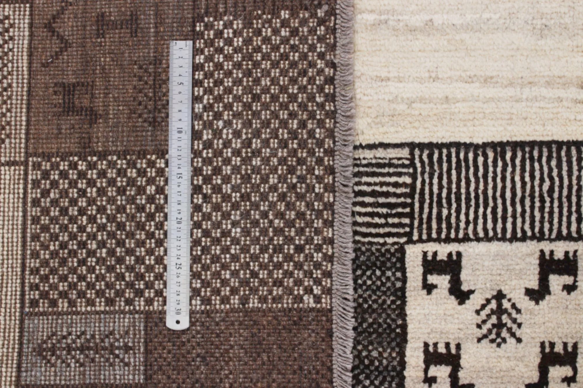 Het woord Gabbeh komt uit het Farsi en betekent oorspronkelijk, ruw, natuurlijk. De kleden worden gemaakt door nomaden stammen en de motieven zijn geïnspireerd op de natuur. De motieven variëren enorm, maar de uitstraling van de kleden is rustig. De hebben een hoge pool en een grove knoop, waardoor ze dikker zijn dan de meeste . Ze worden meestal helemaal van wol gemaakt, ook de schering. De wol die gebruikt wordt is van uitstekende kwaliteit, hand gesponnen en wordt gekleurd met plantaardige kleurstoffen. Kenmerkend zijn dan ook de mooie, diepe, natuurlijke kleuren. Er zijn ook Gabbeh met een kortere pool en een hogere knoopdichtheid. Deze worden ‘Gabbeh Kashkooli’ genoemd.