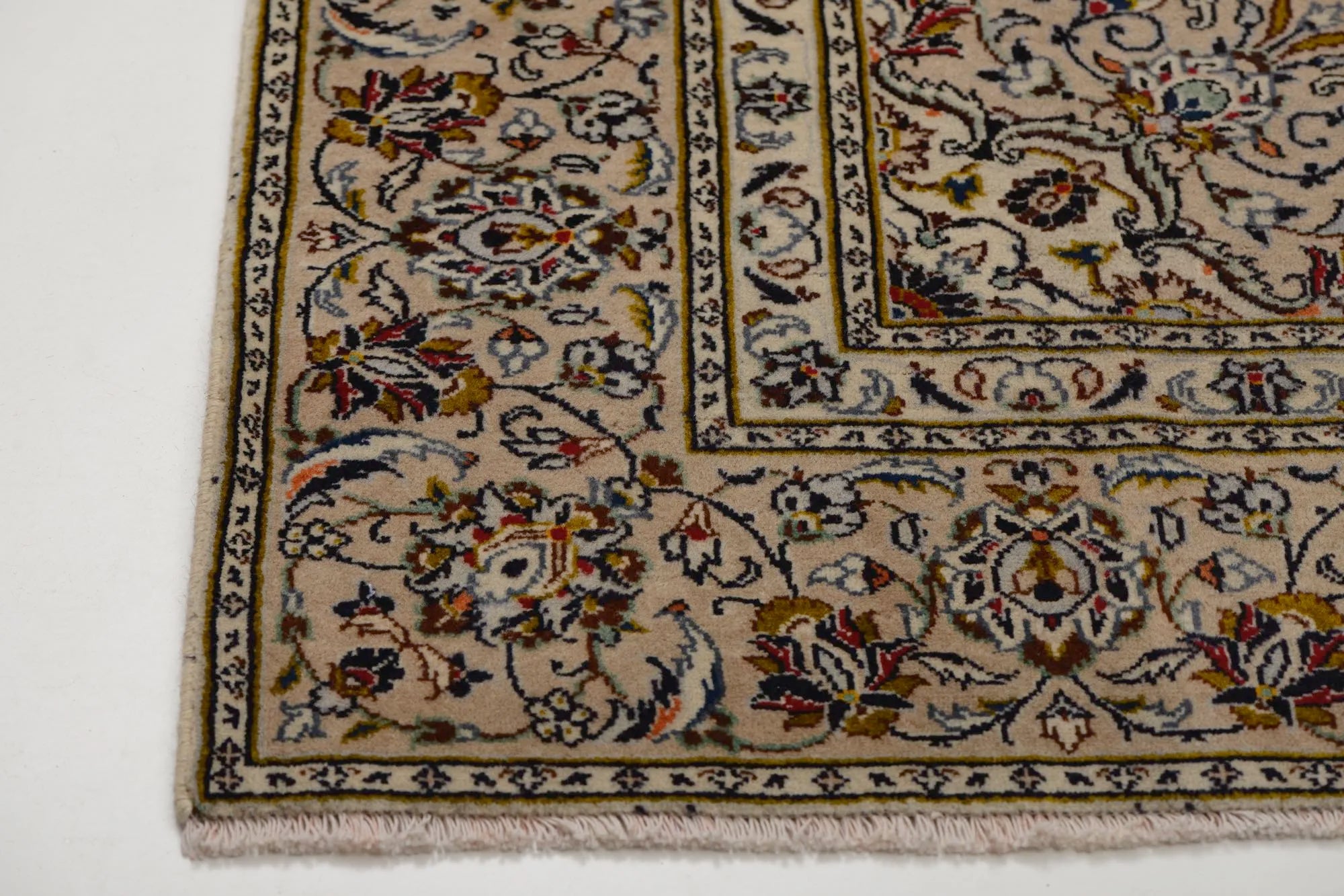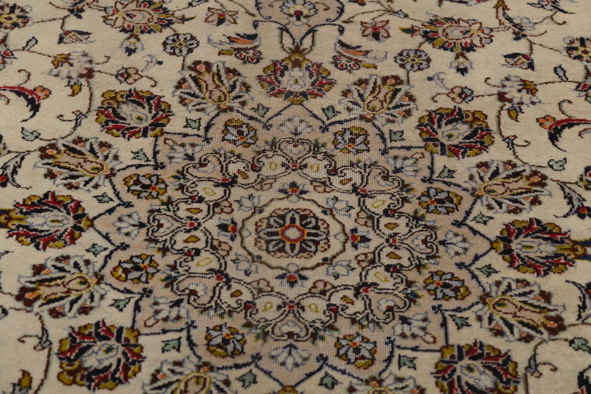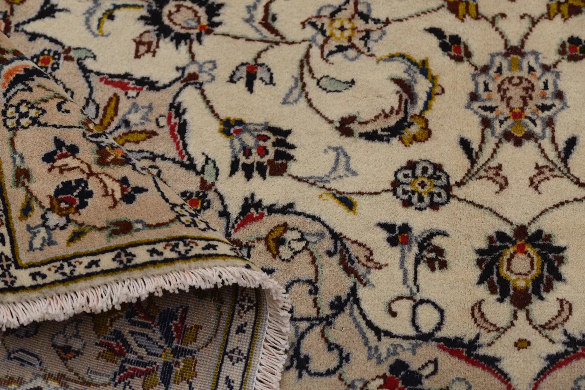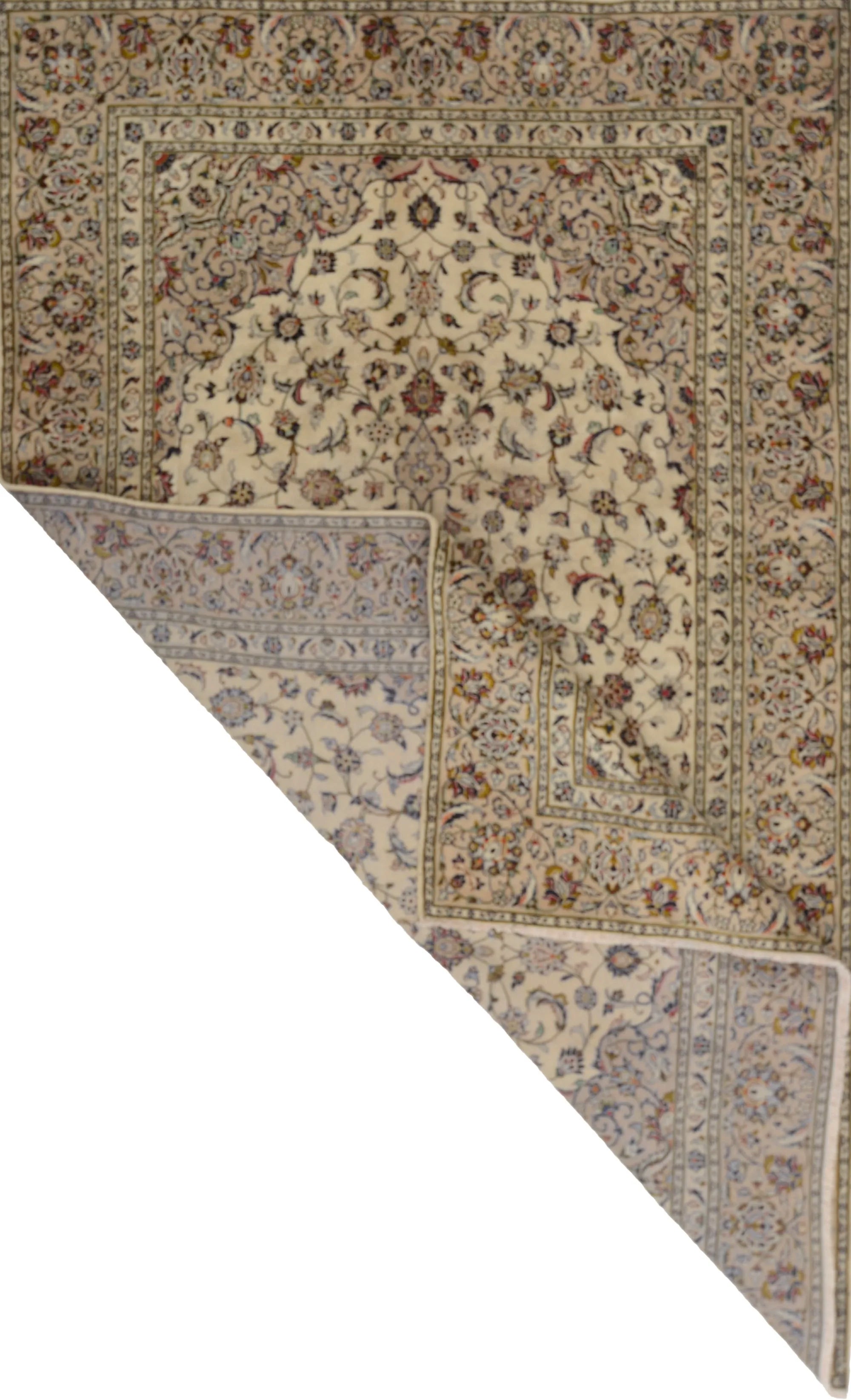 Kashan (of Keshan) tapijten: Een Voorbeeld van de Fijnste Perzische Tapijtkunst.Kashan-tapijten zijn werkelijk een voorbeeld van het beste in Perzische tapijtkunst. Ze bieden een combinatie van schoonheid, duurzaamheid en culturele waarde. Als u overweegt een Kashan-tapijt aan te schaffen, kunt u er zeker van zijn dat u investeert in een stukje Iraanse cultuur en geschiedenis dat vele jaren vreugde en schoonheid zal brengen. Kashan-tapijten zijn met de hand geknoopt met grote precisie en volgen traditionele weeftechnieken die zich door de eeuwen heen hebben ontwikkeld. De tapijten staan bekend om hun hoge knoopdichtheid en gedetailleerde patronen. Kashan-tapijten hebben vaak complexe ontwerpen met grote centrale medaillons, bloemen, arabesken en gestileerde plantmotieven. De patronen zijn vaak symmetrisch en hebben een harmonieuze vormgeving die de traditionele Perzische kunst weerspiegelt. De meest gebruikte kleuren in Kashan-tapijten zijn rood, blauw, ivoor en beige. Deze kleuren worden vaak gecombineerd om een rijke en contrasterende palet te creëren. De kleuren worden traditioneel gemaakt met natuurlijke kleurstoffen, wat hen hun diepe en duurzame uitstraling geeft. De meeste Kashan-tapijten zijn gemaakt van hoogwaardige wol, die een zachte en duurzame oppervlakte biedt. Sommige van de meer exclusieve exemplaren bevatten ook zijde, wat zorgt voor extra glans en rijke details. De basis van de tapijten is meestal gemaakt van katoen, wat zorgt voor stabiliteit en structuur. Kashan-tapijten staan bekend om hun hoge knoopdichtheid, wat ze dicht en duurzaam maakt. Deze hoge knoopdichtheid maakt het mogelijk zeer gedetailleerde patronen te creëren en draagt bij aan de lange levensduur van het tapijt. Kashan-tapijten zijn verkrijgbaar in verschillende maten, van kleine gebedstapijten tot grote kamerformaten. Ze zijn populair zowel voor thuisgebruik als voor decoratieve doeleinden in openbare ruimtes. Kashan-tapijten vormen een belangrijk onderdeel van het culturele erfgoed van Iran en vertegenwoordigen een lange traditie van artistieke expressie en vakmanschap. Ze zijn vaak een uitdrukking van de lokale cultuur en esthetiek en worden beschouwd als een vorm van kunstwerken. Vele Kashan-tapijten zijn historisch gezien gemaakt voor koninklijke hoven en rijke kooplieden, wat hen markeert als symbolen van luxe en status. Ze zijn nog steeds zeer gewild, zowel als verzamelobjecten als voor decoratie in exclusieve omgevingen.