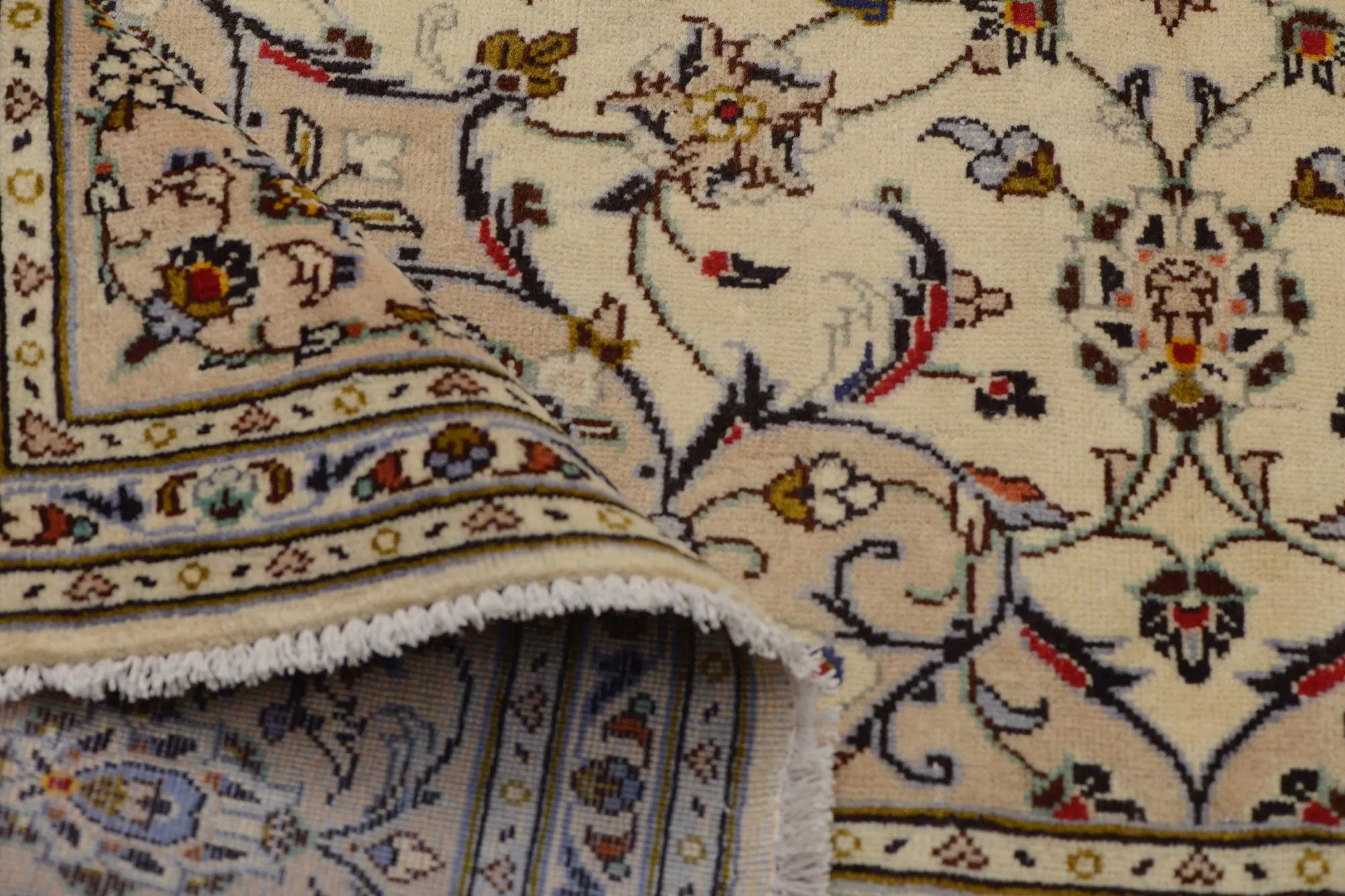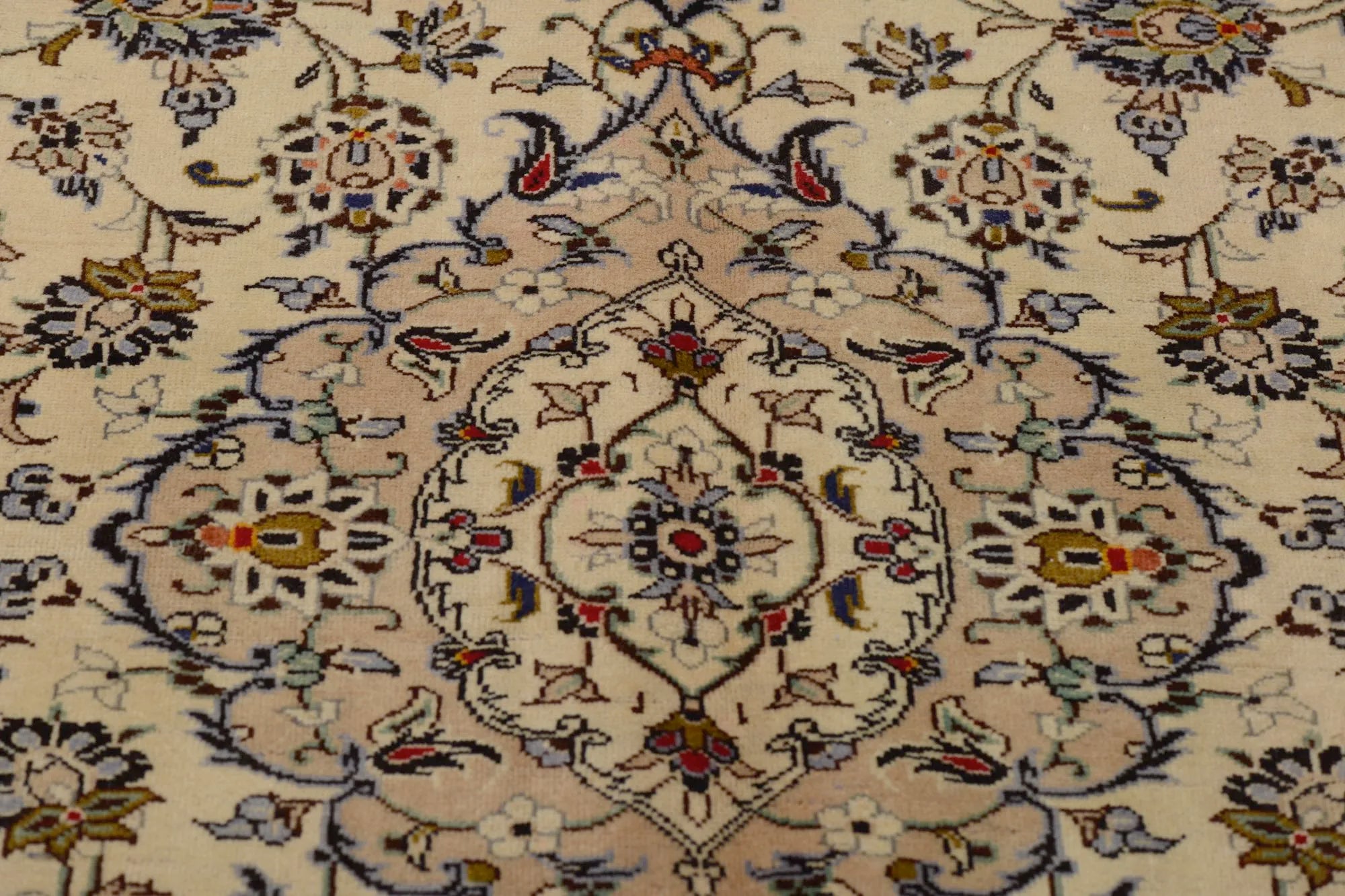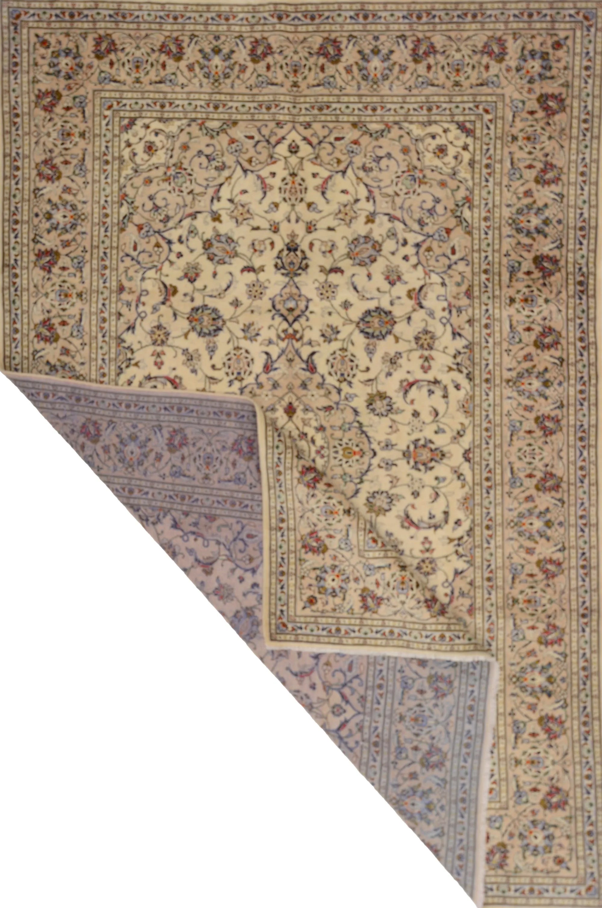 Kashan (of Keshan) tapijten: Een Voorbeeld van de Fijnste Perzische Tapijtkunst.Kashan-tapijten zijn werkelijk een voorbeeld van het beste in Perzische tapijtkunst. Ze bieden een combinatie van schoonheid, duurzaamheid en culturele waarde. Als u overweegt een Kashan-tapijt aan te schaffen, kunt u er zeker van zijn dat u investeert in een stukje Iraanse cultuur en geschiedenis dat vele jaren vreugde en schoonheid zal brengen. Kashan-tapijten zijn met de hand geknoopt met grote precisie en volgen traditionele weeftechnieken die zich door de eeuwen heen hebben ontwikkeld. De tapijten staan bekend om hun hoge knoopdichtheid en gedetailleerde patronen. Kashan-tapijten hebben vaak complexe ontwerpen met grote centrale medaillons, bloemen, arabesken en gestileerde plantmotieven. De patronen zijn vaak symmetrisch en hebben een harmonieuze vormgeving die de traditionele Perzische kunst weerspiegelt. De meest gebruikte kleuren in Kashan-tapijten zijn rood, blauw, ivoor en beige. Deze kleuren worden vaak gecombineerd om een rijke en contrasterende palet te creëren. De kleuren worden traditioneel gemaakt met natuurlijke kleurstoffen, wat hen hun diepe en duurzame uitstraling geeft. De meeste Kashan-tapijten zijn gemaakt van hoogwaardige wol, die een zachte en duurzame oppervlakte biedt. Sommige van de meer exclusieve exemplaren bevatten ook zijde, wat zorgt voor extra glans en rijke details. De basis van de tapijten is meestal gemaakt van katoen, wat zorgt voor stabiliteit en structuur. Kashan-tapijten staan bekend om hun hoge knoopdichtheid, wat ze dicht en duurzaam maakt. Deze hoge knoopdichtheid maakt het mogelijk zeer gedetailleerde patronen te creëren en draagt bij aan de lange levensduur van het tapijt. Kashan-tapijten zijn verkrijgbaar in verschillende maten, van kleine gebedstapijten tot grote kamerformaten. Ze zijn populair zowel voor thuisgebruik als voor decoratieve doeleinden in openbare ruimtes. Kashan-tapijten vormen een belangrijk onderdeel van het culturele erfgoed van Iran en vertegenwoordigen een lange traditie van artistieke expressie en vakmanschap. Ze zijn vaak een uitdrukking van de lokale cultuur en esthetiek en worden beschouwd als een vorm van kunstwerken. Vele Kashan-tapijten zijn historisch gezien gemaakt voor koninklijke hoven en rijke kooplieden, wat hen markeert als symbolen van luxe en status. Ze zijn nog steeds zeer gewild, zowel als verzamelobjecten als voor decoratie in exclusieve omgevingen.