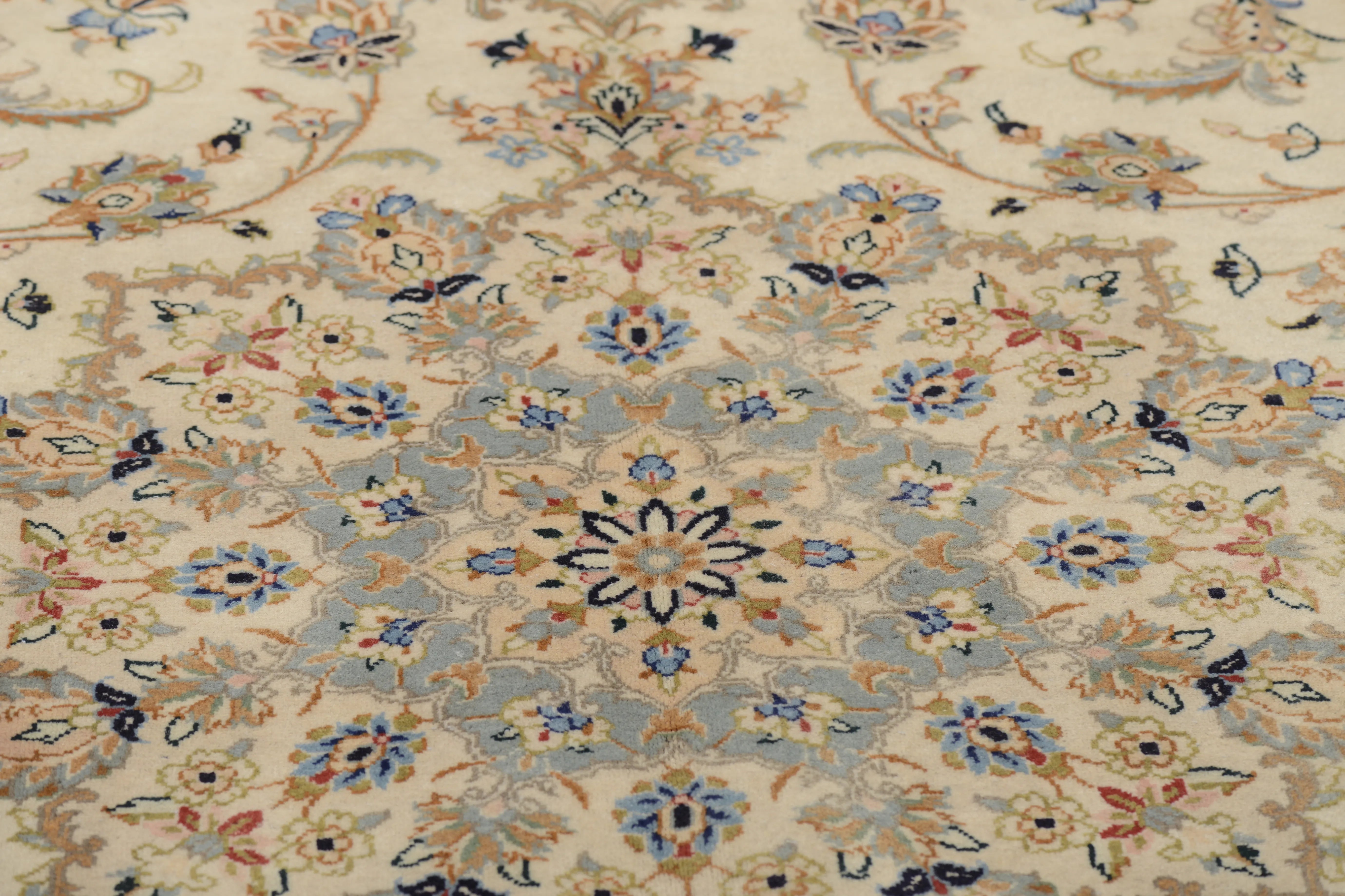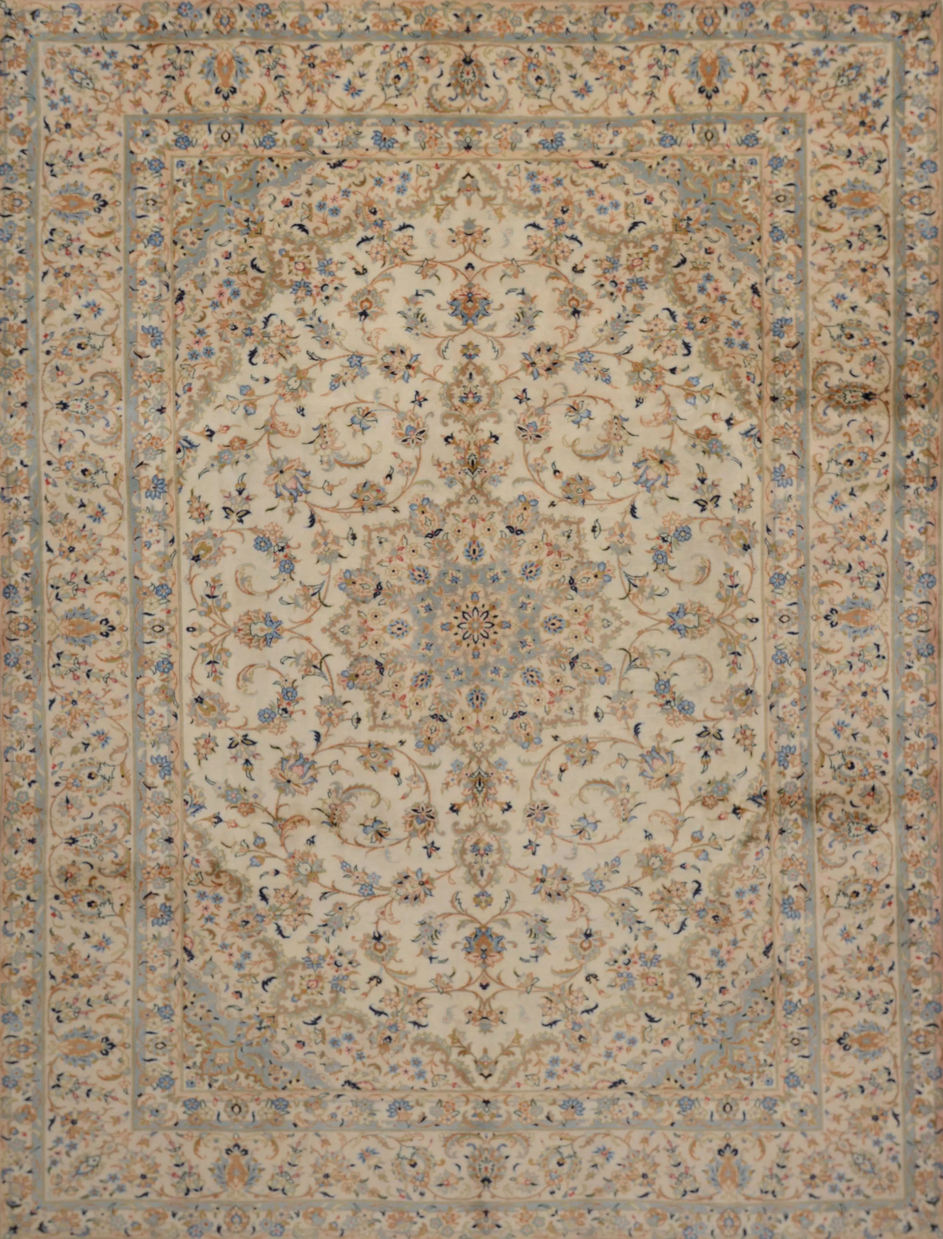 Kashan (of Keshan) tapijten: Een Voorbeeld van de Fijnste Perzische Tapijtkunst.Kashan-tapijten zijn werkelijk een voorbeeld van het beste in Perzische tapijtkunst. Ze bieden een combinatie van schoonheid, duurzaamheid en culturele waarde. Als u overweegt een Kashan-tapijt aan te schaffen, kunt u er zeker van zijn dat u investeert in een stukje Iraanse cultuur en geschiedenis dat vele jaren vreugde en schoonheid zal brengen. Kashan-tapijten zijn met de hand geknoopt met grote precisie en volgen traditionele weeftechnieken die zich door de eeuwen heen hebben ontwikkeld. De tapijten staan bekend om hun hoge knoopdichtheid en gedetailleerde patronen. Kashan-tapijten hebben vaak complexe ontwerpen met grote centrale medaillons, bloemen, arabesken en gestileerde plantmotieven. De patronen zijn vaak symmetrisch en hebben een harmonieuze vormgeving die de traditionele Perzische kunst weerspiegelt. De meest gebruikte kleuren in Kashan-tapijten zijn rood, blauw, ivoor en beige. Deze kleuren worden vaak gecombineerd om een rijke en contrasterende palet te creëren. De kleuren worden traditioneel gemaakt met natuurlijke kleurstoffen, wat hen hun diepe en duurzame uitstraling geeft. De meeste Kashan-tapijten zijn gemaakt van hoogwaardige wol, die een zachte en duurzame oppervlakte biedt. Sommige van de meer exclusieve exemplaren bevatten ook zijde, wat zorgt voor extra glans en rijke details. De basis van de tapijten is meestal gemaakt van katoen, wat zorgt voor stabiliteit en structuur. Kashan-tapijten staan bekend om hun hoge knoopdichtheid, wat ze dicht en duurzaam maakt. Deze hoge knoopdichtheid maakt het mogelijk zeer gedetailleerde patronen te creëren en draagt bij aan de lange levensduur van het tapijt. Kashan-tapijten zijn verkrijgbaar in verschillende maten, van kleine gebedstapijten tot grote kamerformaten. Ze zijn populair zowel voor thuisgebruik als voor decoratieve doeleinden in openbare ruimtes. Kashan-tapijten vormen een belangrijk onderdeel van het culturele erfgoed van Iran en vertegenwoordigen een lange traditie van artistieke expressie en vakmanschap. Ze zijn vaak een uitdrukking van de lokale cultuur en esthetiek en worden beschouwd als een vorm van kunstwerken. Vele Kashan-tapijten zijn historisch gezien gemaakt voor koninklijke hoven en rijke kooplieden, wat hen markeert als symbolen van luxe en status. Ze zijn nog steeds zeer gewild, zowel als verzamelobjecten als voor decoratie in exclusieve omgevingen.