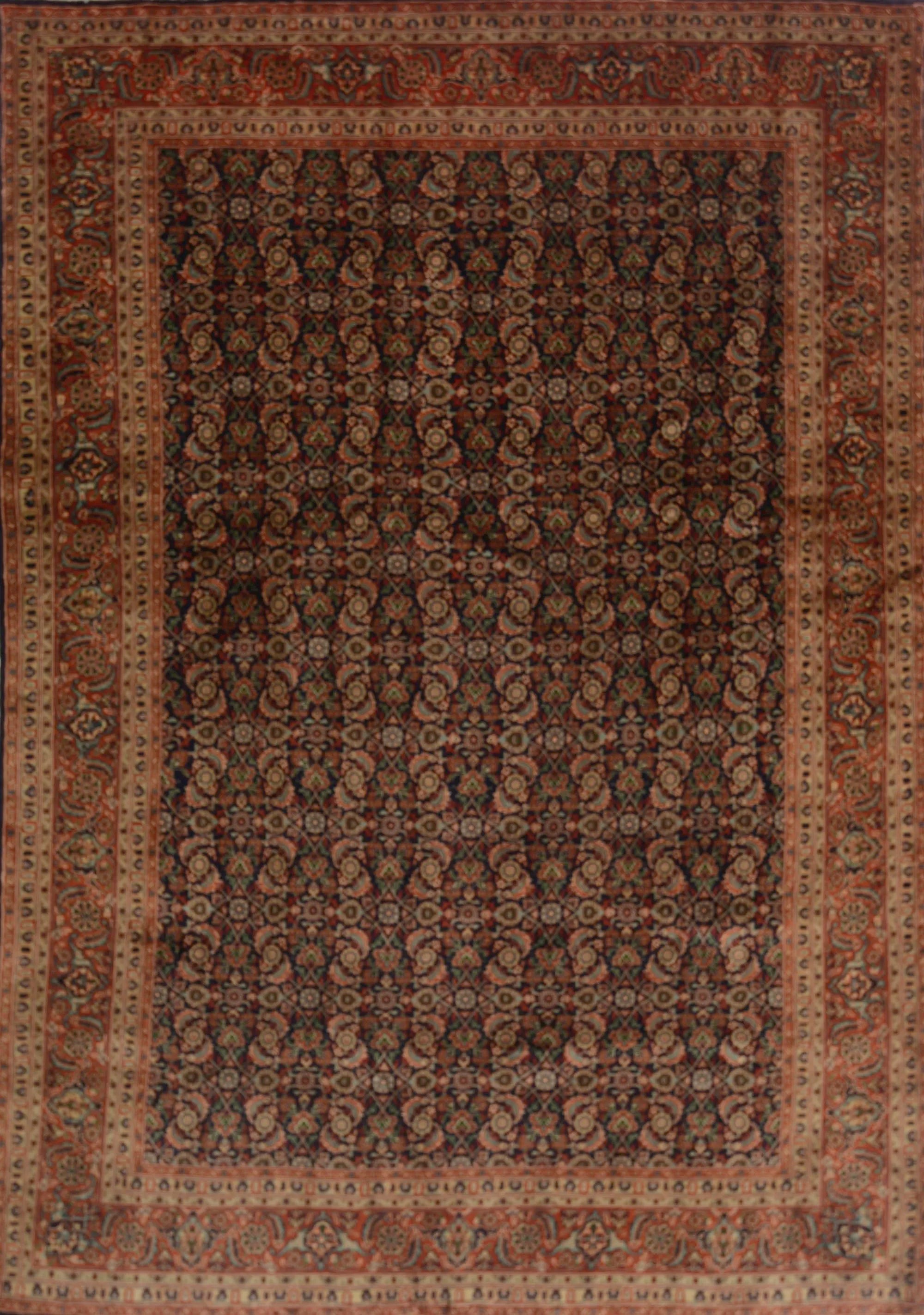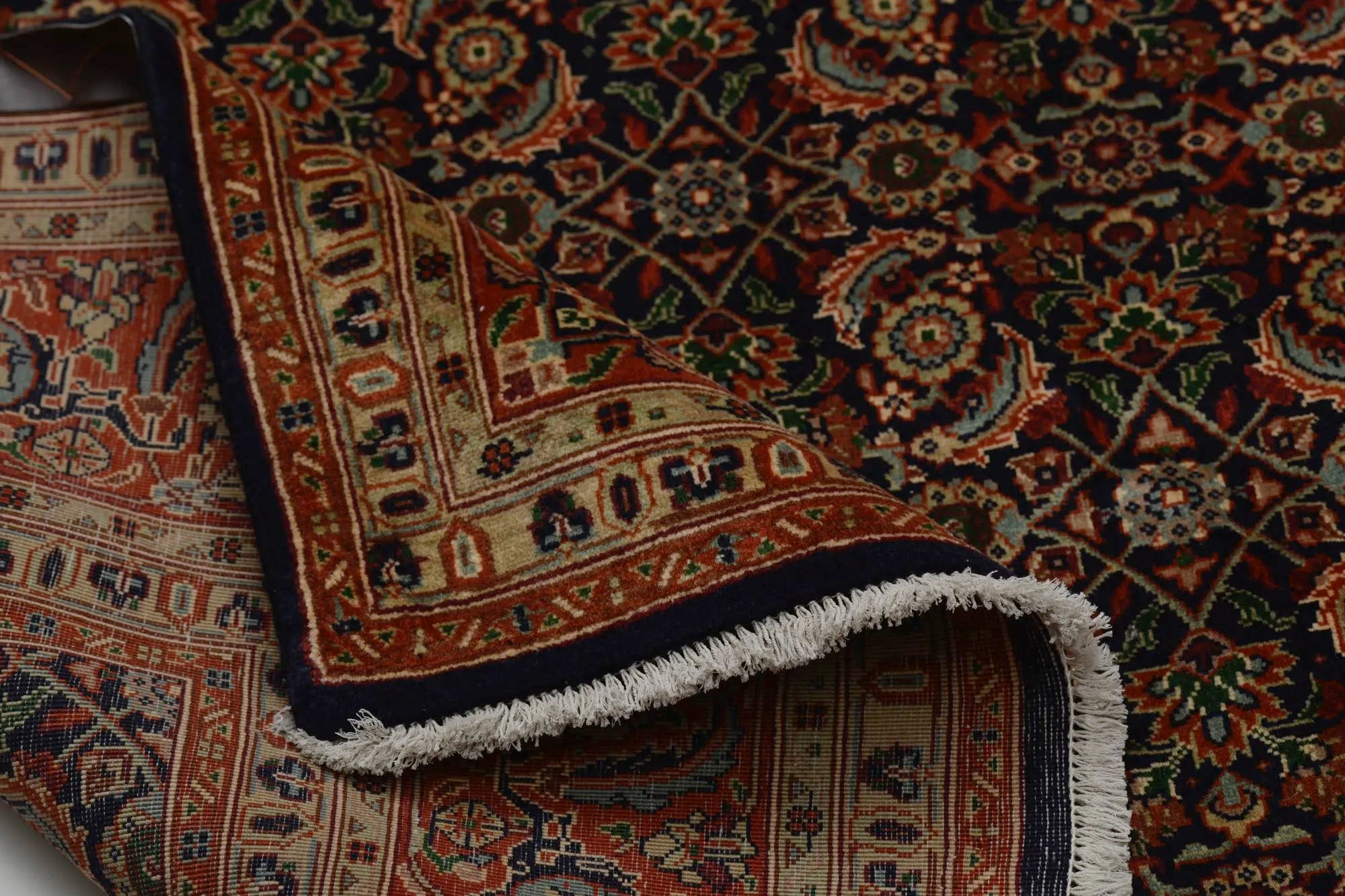 Tabriz 50 Raj is een van de meest bewonderde en verfijnde tapijtkwaliteiten uit de beroemde weefstad Tabriz in het noordwesten van Iran. De term "Raj" verwijst naar het aantal knopen binnen 7 cm, en 50 Raj staat voor een zeer hoge knoopdichtheid. Hierdoor kunnen de patronen met uitzonderlijke precisie en fijne details worden geweven. Knoopdichtheid: ca. 400.000–500.000 knopen/m² Materialen: fijne handgesponnen wol, vaak gecombineerd met zijdedetails Techniek: Perzische dubbele knoop, wat extra kracht en duurzaamheid biedt.
